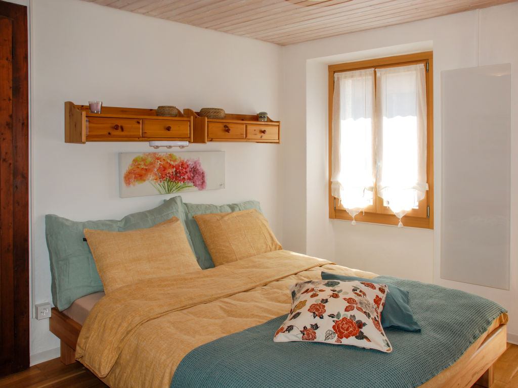 "Cá Rosa CARENA", 4-Zimmer-Wohnung 70 m2 auf 2 Stockwerken. Geräumig, komfortabel und modern eingerichtet: grosse Wohnküche (Backofen, Geschirrspüler, 4 Glaskeramikherd Platten, Toaster, elektrische Kaffeemaschine, Kapseln für die Kaffeemaschine (Chicco D'Oro) extra, Fondue Set (Chinoise, Käse)) mit Esstisch, offenem Kamin, Kabel-TV, Internationale TV-Sender und Radio. Obergeschoss: 1 Doppelzimmer mit 1 Doppelbett (160 cm, Länge 200 cm). 1 Doppelzimmer mit 1 Doppelbett (140 cm, Länge 200 cm). 1 Zimmer mit 1 Bett (90 cm, Länge 200 cm). Bad/WC. E-Heizung. Terrasse 10 m2 teilweise überdacht. Terrassenmöbel, Elektrogrill. Sehr schöne Panoramasicht auf die Berge, das Tal und die Landschaft. Zur Verfügung: Waschmaschine, Bügeleisen, Kinderhochstuhl, Babybett bis 2 Jahre (extra), Haartrockner. Internet (Wireless LAN, gratis). Bitte beachten: geeignet für Familien. Nichtraucher-Haus. Maximal 1 Haustier/Hund erlaubt.