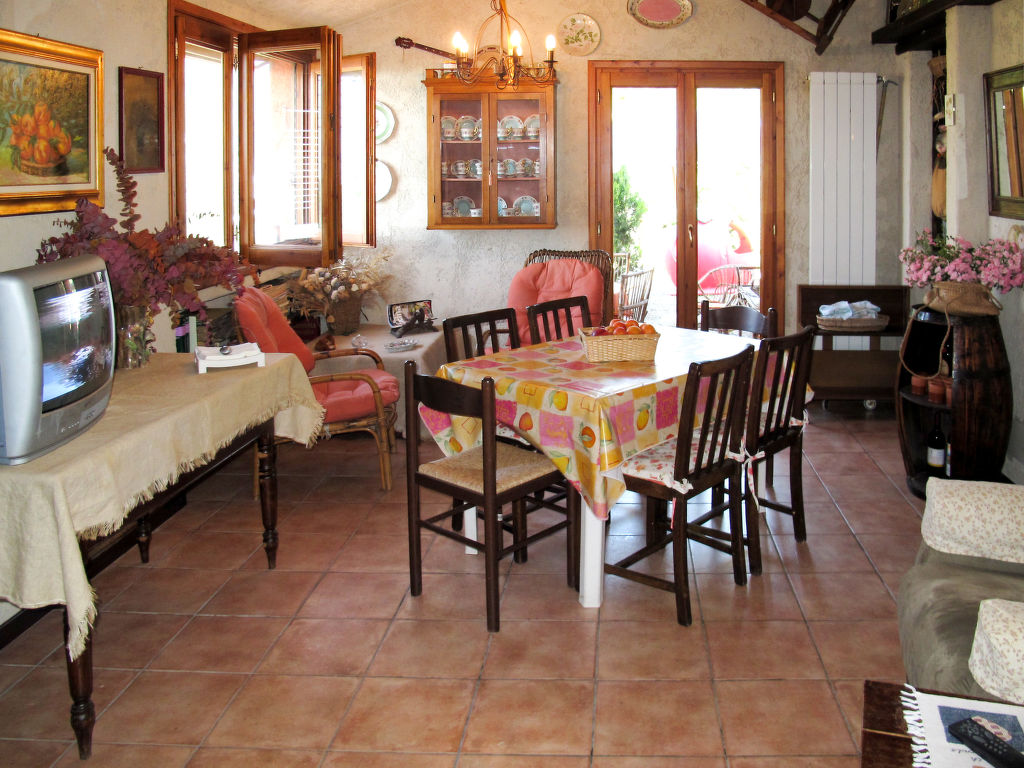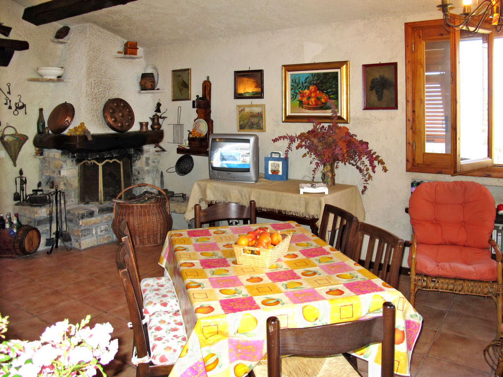 "Villino del Sole", 3-Zimmer-Haus 70 m2. Rustikal eingerichtet: Wohnzimmer mit offenem Kamin, Esstisch und Sat-TV. Ausgang zur Terrasse. 1 Zimmer mit 1 franz. Bett (160 cm), Dusche/WC. 1 Zimmer mit 2 Betten (80 cm). Ausgang zur Terrasse. Kleine, offene Küche (Mini-Backofen, Backofen, Geschirrspüler, 5 Flammen, Mikrowelle, Tiefkühler, elektrische Kaffeemaschine). Bad/WC. G-Heizung. Grosse Terrasse. Terrassenmöbel, Gartengrill, Liegestühle. Schöne Fernsicht auf das Meer und die Landschaft. Zur Verfügung: Waschmaschine, Bügeleisen, Kinderhochstuhl, Babybett. Maximal 2 Haustiere/Hunde erlaubt. CITRA: 008055-LT-0306
