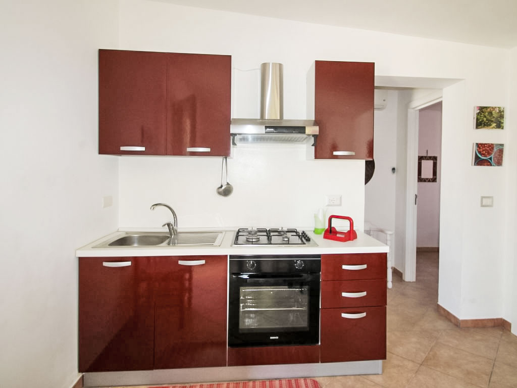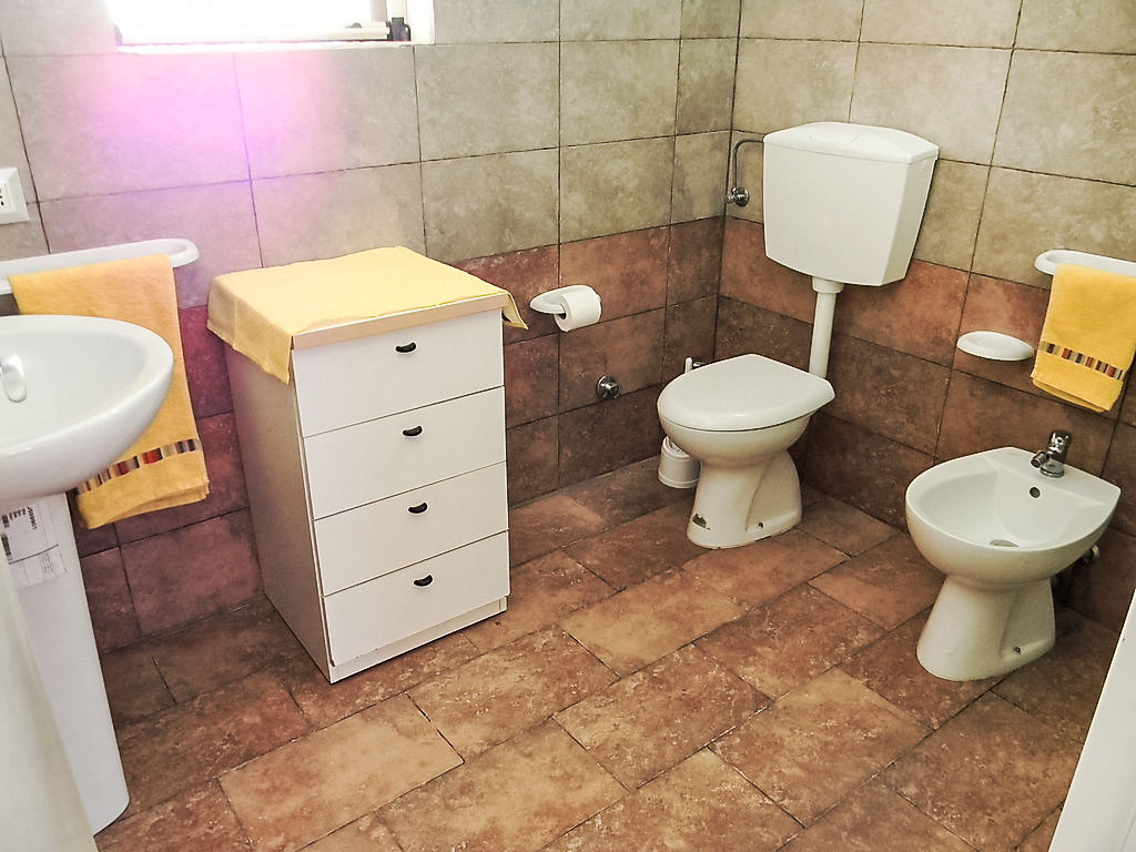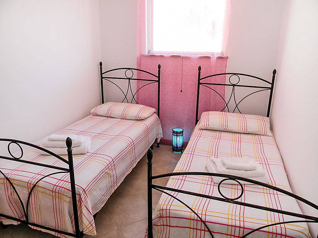 "Grande", 3-Zimmer-Haus 60 m2, im Erdgeschoss. Renoviert im Jahre 2012, einfach und komfortabel eingerichtet: 1 Doppelzimmer. Esszimmer mit Esstisch, Küchenblock und TV (Flachbildschirm). Ausgang zum Gartensitzplatz. 1 Zimmer mit 2 Betten. Kochnische (4 Kochplatten, Backofen). Dusche/Bidet/WC. Klimaanlage (extra). Gartensitzplatz. Terrassenmöbel, Gartengrill, Liegestühle. Zur Verfügung: Fliegengitter. Parkplatz Nr. 1 (eingezäunt). Geeignet für Familien.
