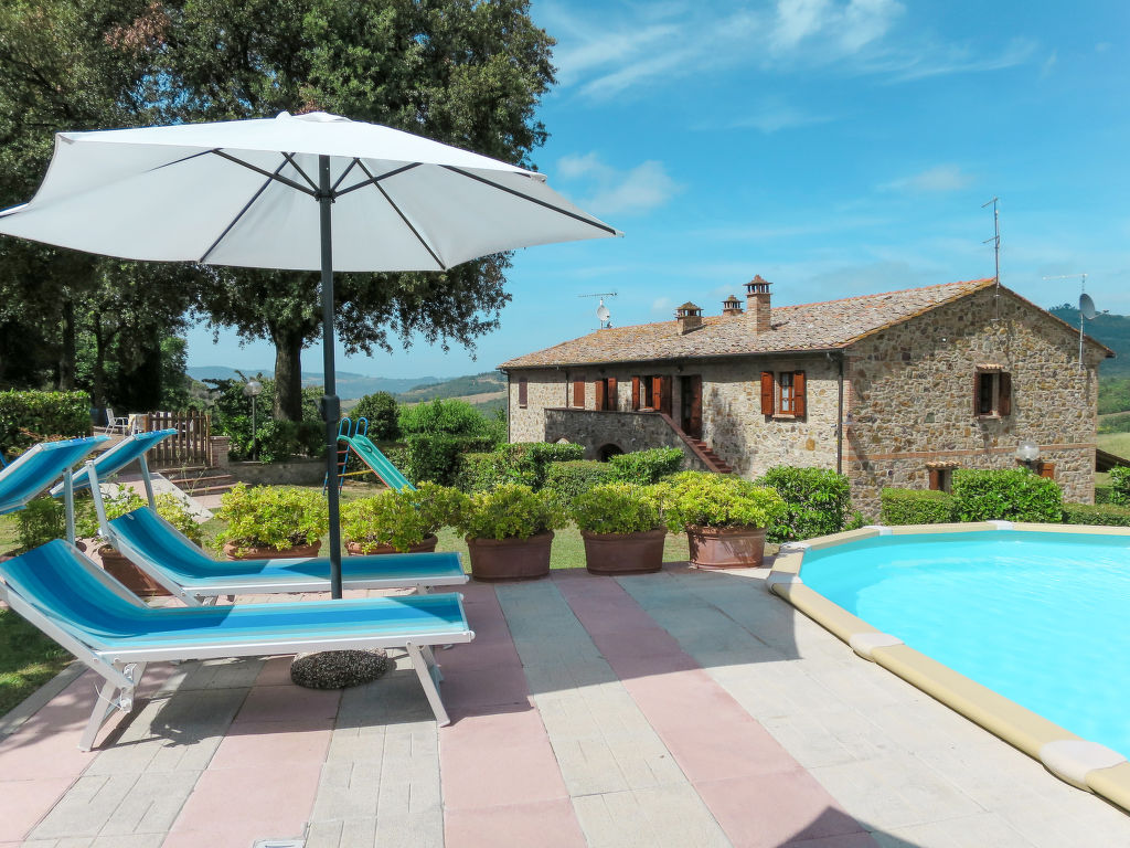 Bauerngut "Podere Cafaggiolo", umgeben von Bäumen und Wiesen. 2 Häuser im Ferienresort. 4 Wohnungen in der Residenz. 11 km vom Zentrum von Volterra, 18 km vom Zentrum von San Gimignano, 50 km vom Zentrum von Siena, auf einem Hügel, 55 km vom Meer, im Wald. Zur Mitbenutzung: Grundstück 3'000 m2, Garten (nicht eingezäunt) Rasen und Bäumen, Schwimmbad (11 x 5 m, saisonale Verfügbarkeit: 15.Mai.-25.Sep.). Aussendusche, Basketball, Sitzplatz, Gartenmöbel, Grill, Kinderspielplatz. Im Hause: Wireless LAN, Tischtennis, Tischfussball. Brötchenservice. Zufahrt (4 km Naturweg). Parkplatz auf dem Grundstück. Einkaufsgeschäft 6 km, Supermarkt 11 km, Sandstrand 55 km. Wandergebiete: Monte Nero 1 km. Auf dem Grundstück Tierhaltung. Ab Hof Verkauf von bäuerlichen Produkten. Bitte beachten: Der Besitzer wohnt auf dem gleichen Grundstück. Eigentümer hat einen Hund. Badekappenpflicht.