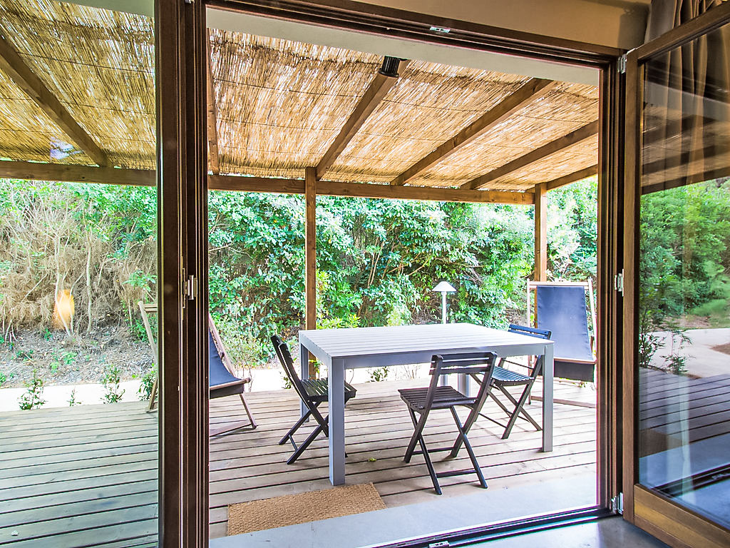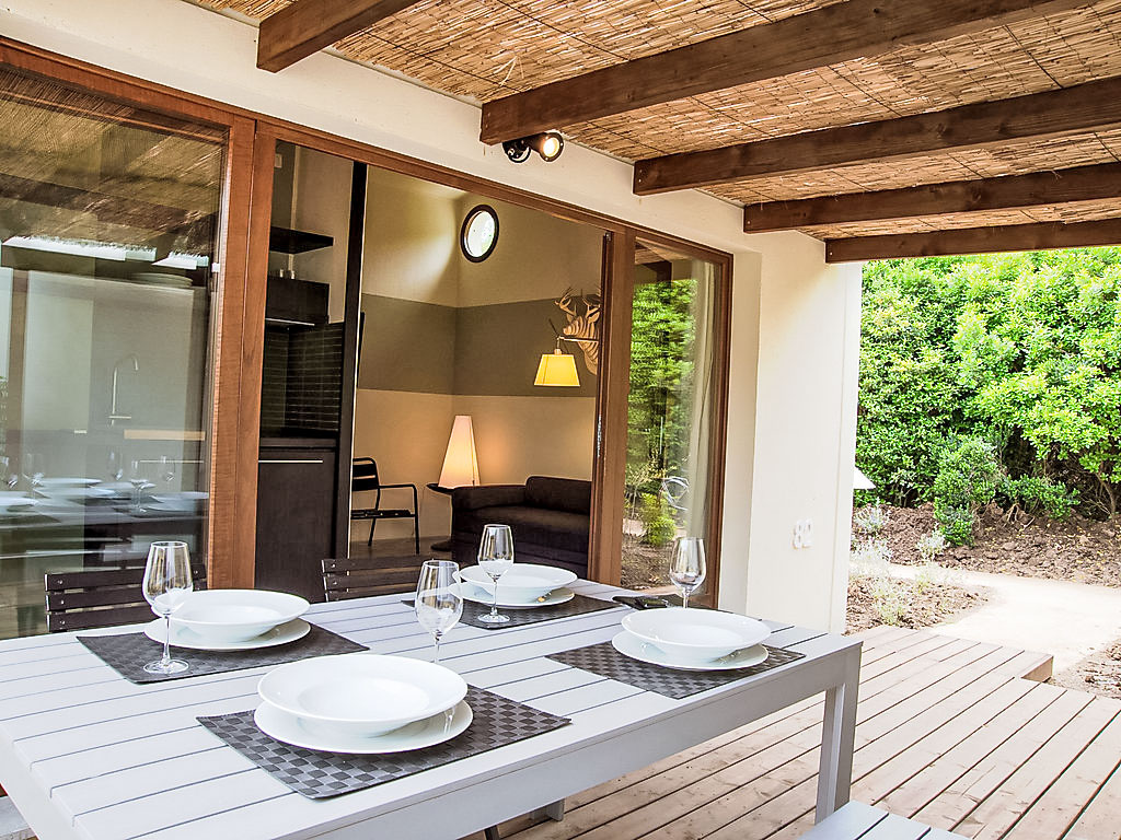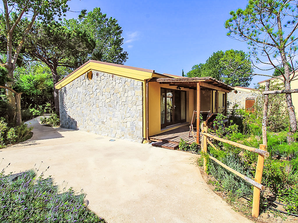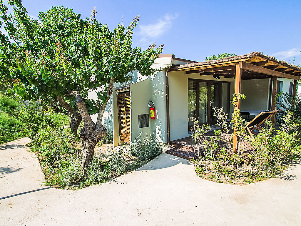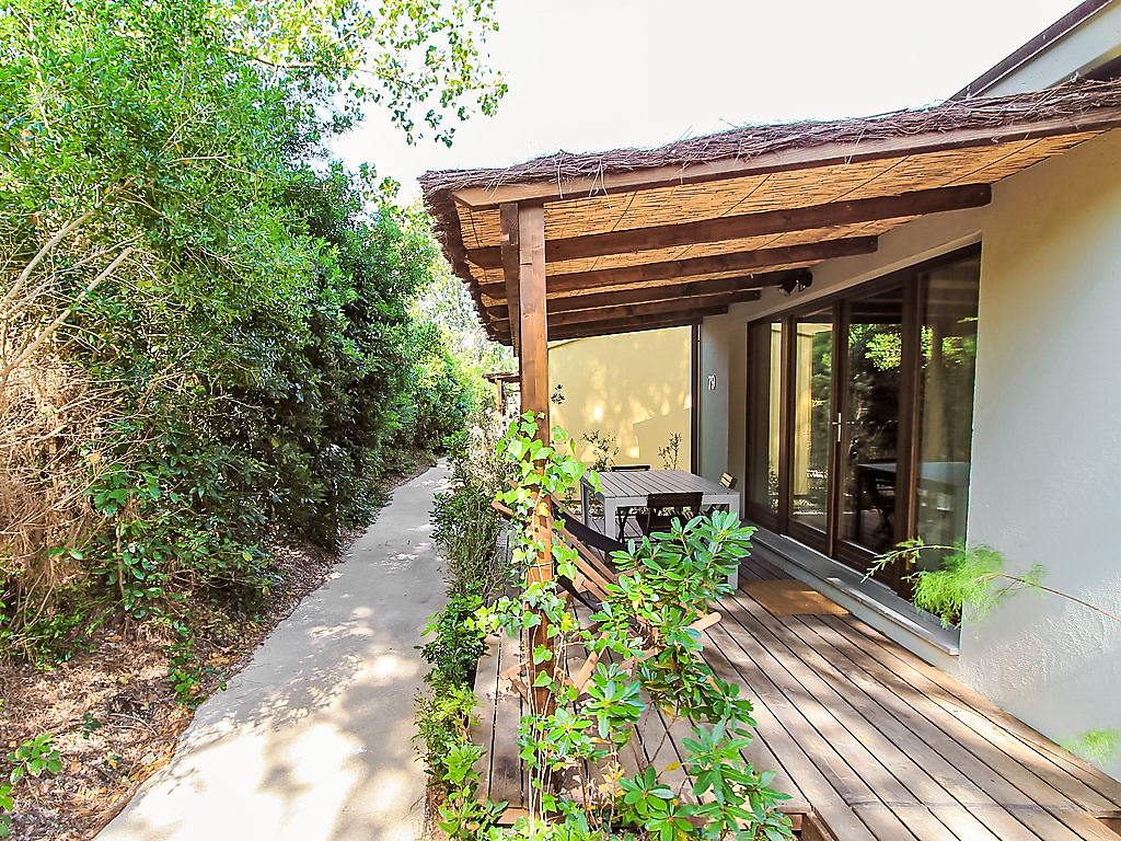 "Deluxe", 3-Zimmer-Haus 40 m2, im Erdgeschoss. Modern und stilvoll eingerichtet: Wohn-/Esszimmer mit 1 Doppeldiwanbett, Küchenblock und Digital-TV. Ausgang zur Terrasse. 1 Doppelzimmer mit Digital-TV. 1 kleines Zimmer mit 2 Betten. Dusche/Bidet/WC. Klimaanlage. Gartensitzplatz. Sitzplatz. Die Unterbringun von Behinderten muss im Voraus beantragt werden.