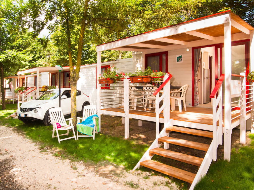 Die Ferienanlage VILLAGGIO SAN FRANCESCO liegt am Ortsende von Duna Verde, zwischen Caorle (9 km) und Eraclea Mare (4 km) und grenzt direkt an den schönen Sandstrand mit Mietmöglichkeit von Sonnenliegen und Sonnenschirmen. Der Sonnenschirm des Mobilhomes kann an den Strand mitgenommen und am freien Strand (hier Strandservice auf Wunsch) aufgestellt werden. Ca. 32 ha großes, komplett abgeschlossenes Grundstück mit zahlreichen Bungalows, Wohnungen und einem Campingplatz. In der Anlage: 3 Restaurants/Pizzeria, Supermarkt mit Metzgerei, Eisdiele, Joghurt-Bar, 2 Bazars, Friseur, Zeitungskiosk, Fahrrad-Verleih, Bankomat, Apotheke, Erste-Hilfe-Station, weitere Geschäfte. Großes Sport- und Freizeitangebot: 4 Pool-Bereiche mit insgesamt 9 Pools, teils mit Wasserspielen, Wasserfällen, 2 mit separatem Kinderbecken, 1 mit Sprudelbad, jeweils mit Sonnenliegen und Sonnenschirmen (alle Pools sind ca. vom 20.05.-15.09. geöffnet, 1 davon die gesamte Saison, da beheizt, 2 der Pools sind abwechselnd je 1 Tag/Woche wegen Reinigung geschlossen), Volleyball- und Basketballfeld, am Strand Beach-Volley und Bocciabahn. Animation für Jugendliche und Erwachsene, Miniclub (ab 4 Jahre, jeweils 01.06. bis 10.09.). Wasserpark GARDEN (geöffnet ca. 01.06.-10.09.) mit 3 Pools, 2 Rutschen, Kinderbecken, Sprudelbad, Fitnesscenter und Disco-Pub. Gegen Bezahlung: 2 Tennisplätze (auch beleuchtet), 2 Multifunktionsfelder, Sportplätze. Unsere Mobilhomes liegen ungefähr in der Mitte der Anlage und haben jeweils 1 Parkplatz beim Mobilhome. Weitere Parkmöglichkeiten innerhalb des Feriendorfs (gegen Bezahlung) oder außerhalb (ohne Berechnung). Jeweils überdachte Holzterrasse mit Mobiliar und Sonnenschirm, Gasgrill auf Anfrage und gegen Bezahlung am Ort. CAO 602/604 haben jeweils zusätzlich 2 Sonnenliegen. Freundliche, feriengerechte Einrichtung. Sat-TV (deutsche Programme), Internetzugang (WLAN, € 8/Tag). Safe. Fliegengitter (in CAO 602/603/604 nur in den Schlafzimmern). Klimaanlage mit Kühl-/Heizfunktion (nicht in allen Räumen). Hinweise: Rauchen ist in den Mobilhomes nicht gestattet. Von 23-7 h und 13-15 h bleibt die Anlage für PKW geschlossen (Schranke).