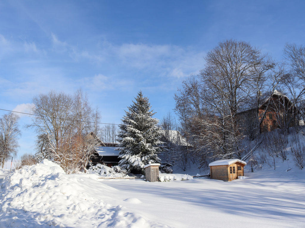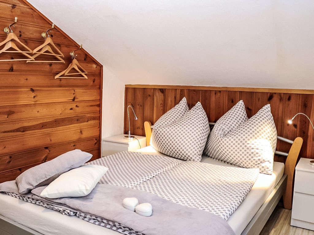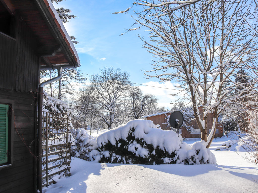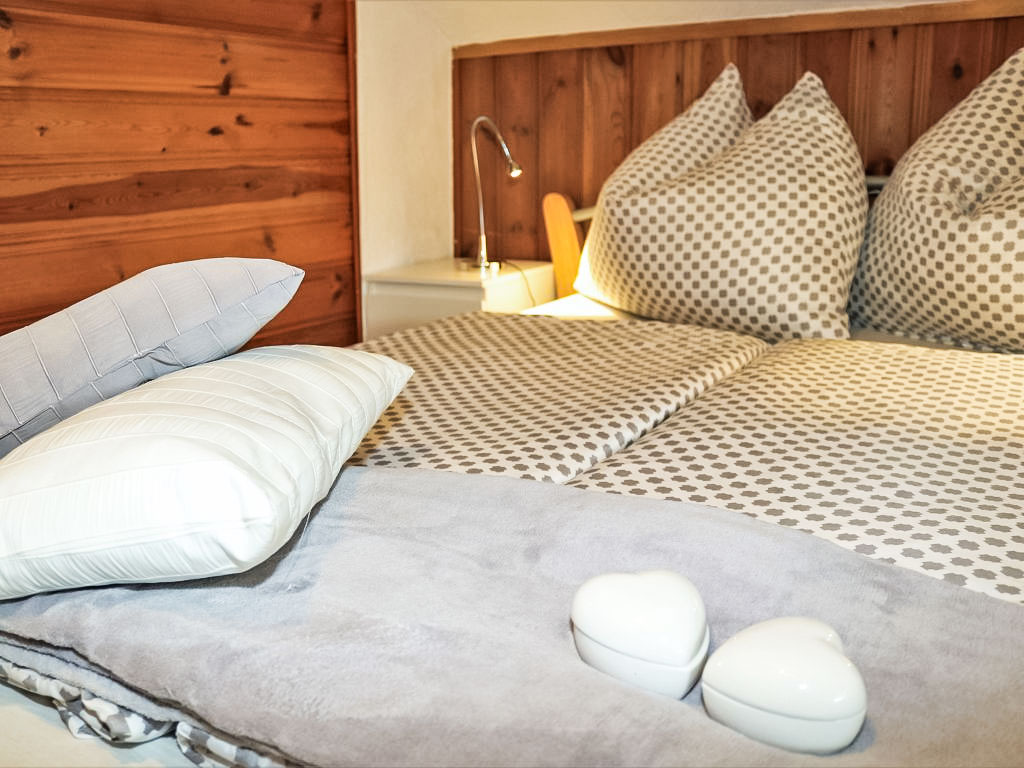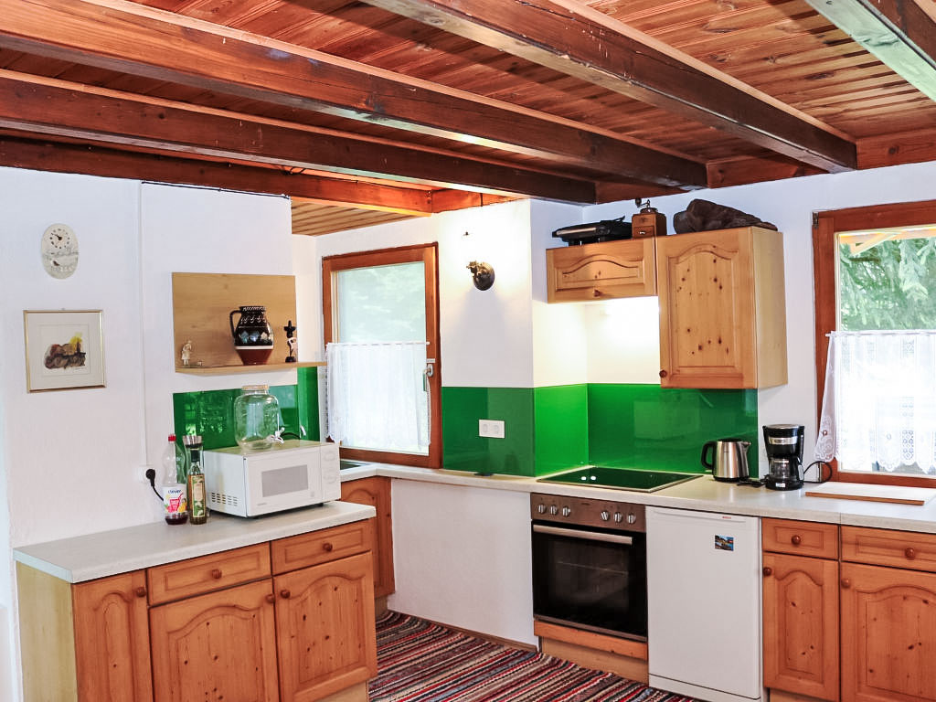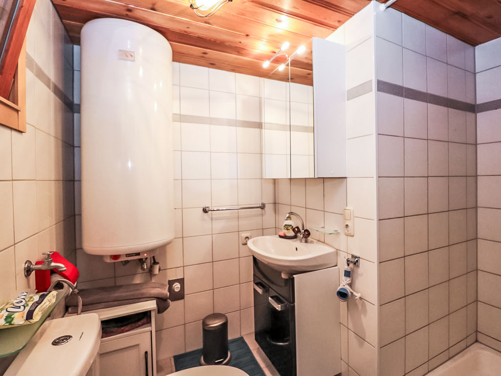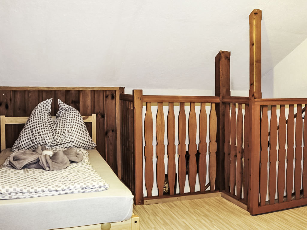 3-Zimmer-Haus 80 m2 auf 2 Stockwerken. Objekt geeignet für 2 Erwachsene + 2 Kinder. Teilweise abgeschrägt, gemütlich und mit viel Holz eingerichtet: grosses Wohn-/Esszimmer mit 1 Doppeldiwanbett, Essecke und Sat-TV (Flachbildschirm), Stereoanlage und DVD. Ausgang zur Terrasse. Offene Küche (Backofen, 4 Glaskeramikherd Platten, Mikrowelle, elektrische Kaffeemaschine). Dusche/WC. E-Heizung. Obergeschoss: (steile Treppe) 1 offenes Kinderzimmer mit 2 Betten (90 cm, Länge 180 cm). 1 Zimmer mit 1 franz. Bett (160 cm, Länge 200 cm). Ausgang zur Loggia. Holzböden. Terrasse teilweise überdacht, Gartensitzplatz. Terrassenmöbel, Balkonmöbel, Gartengrill, Liegestühle. Zur Verfügung: Bügeleisen, Fliegengitter, Kinderhochstuhl, Babybett, Haartrockner. Bitte beachten: geeignet für Familien. Nichtraucher-Haus. 1 kleines Haustier/Hund erlaubt. Rauchmelder, Feuerlöscher.