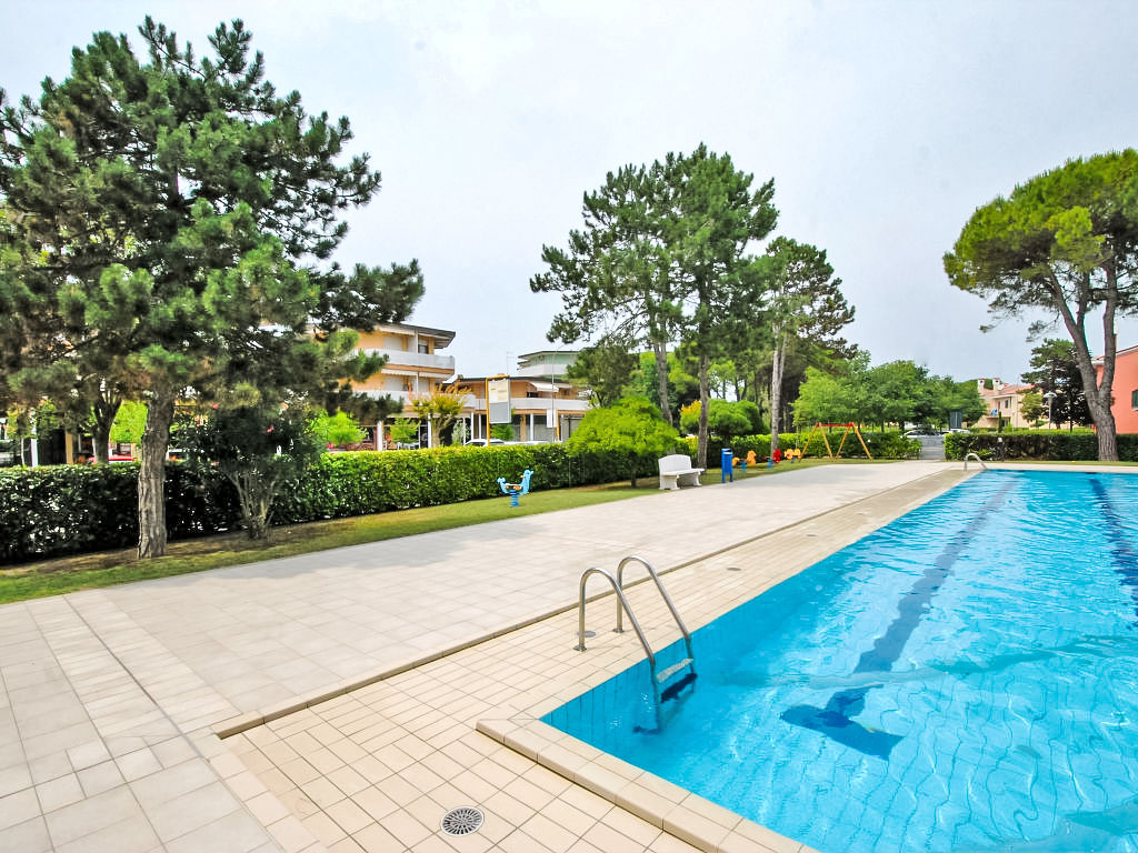 Gemütliche, komfortable Residenz "Michelangelo", angebaut. Im Ortszentrum von Bibione, exzellente Lage: Absolut zentral und dennoch ruhig, 850 m vom Meer, 850 m vom Strand. Zur Mitbenutzung: Garten (eingezäunt) Bäumen, Schwimmbad eingezäunt (25 x 35 m, 150 - 150 cm tief, saisonale Verfügbarkeit: 15.Mai.-15.Sep.). Kinderbecken, Aussendusche, Kinderspielplatz, Parkplatz beim Haus. Supermarkt 500 m, Restaurant, Bar, Café 300 m, Sandstrand, Thermalbad 850 m. Bitte beachten: geeignet für Familien. Das Foto ist nur ein Hausbeispiel. In diesem Haus sind weitere Ferienwohnungen mietbar.