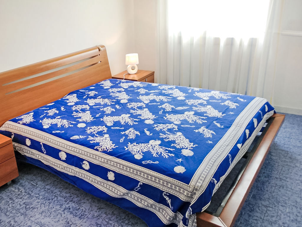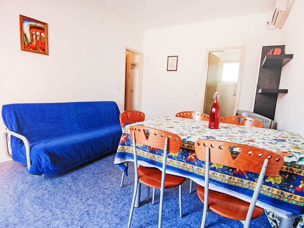 3-Zimmer-Wohnung 57 m2. Hell, einfach und komfortabel eingerichtet: Wohn-/Schlafzimmer mit 1 Doppeldiwanbett, Esstisch und TV. 1 Zimmer mit 1 Doppelbett. 1 Zimmer mit 2 Betten. Kleine Küche). Dusche/Bidet/WC. Klimaanlage. 1 Haustier/Hund erlaubt.