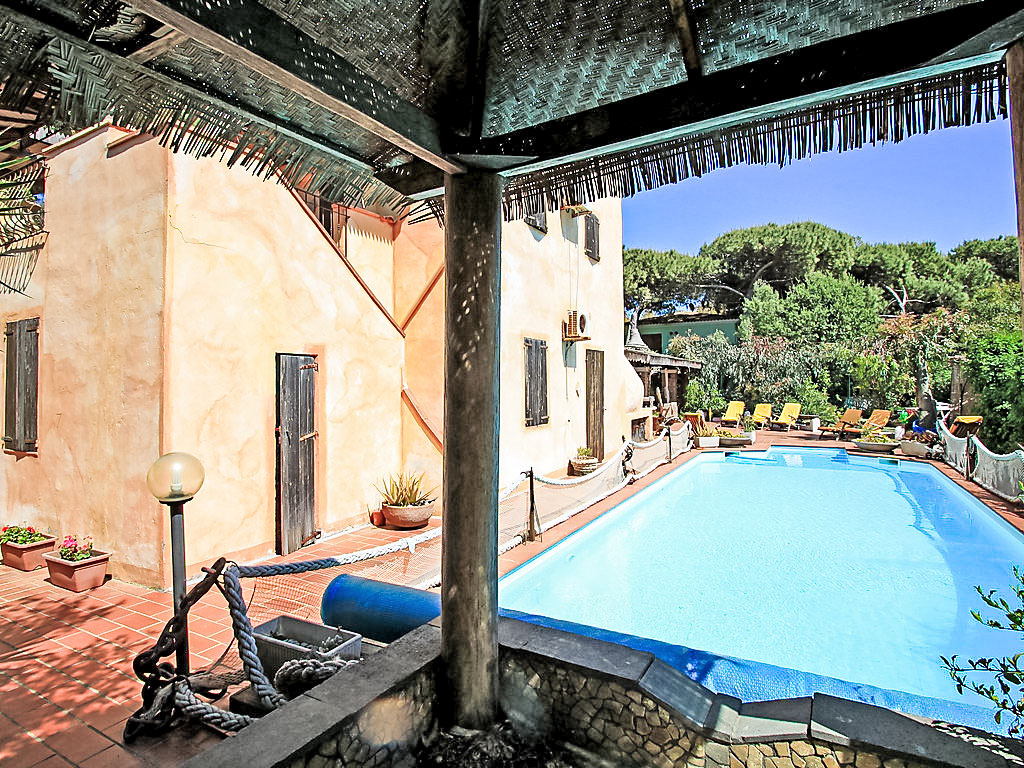 8-Zimmer-Villa 255 m2 auf 2 Stockwerken. Komfortabel und rustikal eingerichtet: grosses Wohnzimmer mit offenem Kamin, Sat-TV, Radio, CD und Stereoanlage. Ausgang zum Garten, zur Veranda, zum Schwimmbad. 4 Doppelzimmer, jedes Zimmer mit Dusche/WC. Grosse Küche (4 Kochplatten, Backofen, Geschirrspüler, Mikrowelle, Tiefkühler, elektrische Kaffeemaschine) mit sep. WC. Ausgang zur Veranda, zum Schwimmbad. G-Heizung, Klimaanlage, Warmluftheizung. Heizung nur verfügbar von 15.11. bis 31.03. Obergeschoss: (Aussentreppe) 2 Doppelzimmer mit Veranda, jedes Zimmer mit Dusche/WC. (Aussentreppe) 1 Zimmer mit 2 Betten und Dusche/WC. Terrassenmöbel, Gartengrill, Sitzplatz. Zur Verfügung: Waschmaschine, Haartrockner. Internet (Wireless LAN, gratis). Parkplatz. Geeignet für Familien.