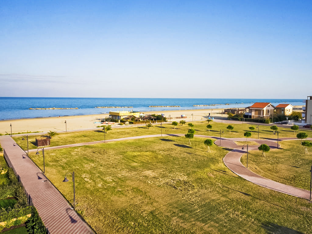 Feriensiedlung "Rosburgo", auf 4 Stockwerken. 42 Wohnungen in der Residenz. 1 km vom Zentrum von Roseto degli Abruzzi, 100 m vom Meer, 100 m vom Strand, direkter Zugang zum Strand. Zur Mitbenutzung: Schwimmbad (6 x 7 m, 145 cm tief, saisonale Verfügbarkeit: 15.Jun.-16.Sep. Öffnungszeiten Schwimmbad: 10:30-12:30 und 16:30-19:00). Privatstrand. In der Anlage: Bar, Aufenthaltsraum, Wireless LAN, Fahrstuhl, Waschmaschine (zur Mitbenutzung, extra). Zufahrt bis zum Haus. Parkplatz (überdacht, beschränkte Anzahl, extra). Einkaufsgeschäft 500 m, Einkaufszentrum 1 km, Restaurant, Bar 100 m, Bahnstation "Roseto" 2 km, Sandstrand 100 m. Bitte beachten: Eisenbahnlinie in der Nähe. Das Foto ist nur ein Hausbeispiel.