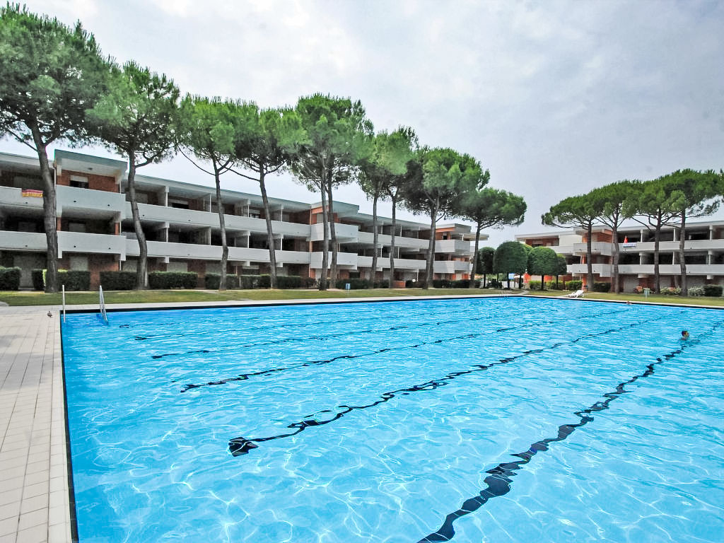 Residenz "Solarium", auf 3 Stockwerken. Im Ortszentrum von Bibione Spiaggia, sonnige Lage, 1.4 km vom Meer, 1.4 km vom Strand. Zur Mitbenutzung: Park, Liegewiese, Schwimmbad (30 x 15 m, 150 - 150 cm tief, saisonale Verfügbarkeit: 15.Mai.-15.Sep. Öffnungszeiten Schwimmbad: 09:00-13:30 und 15:30-22:00). Terrasse, Parkplatz beim Haus. Sandstrand 1.4 km, Thermalbad 2 km. Nahe gelegene Sehenswürdigkeiten: Luna Park. Bitte beachten: kein Fahrstuhl vorhanden. Das Foto ist nur ein Hausbeispiel. In diesem Haus sind weitere Ferienwohnungen mietbar.