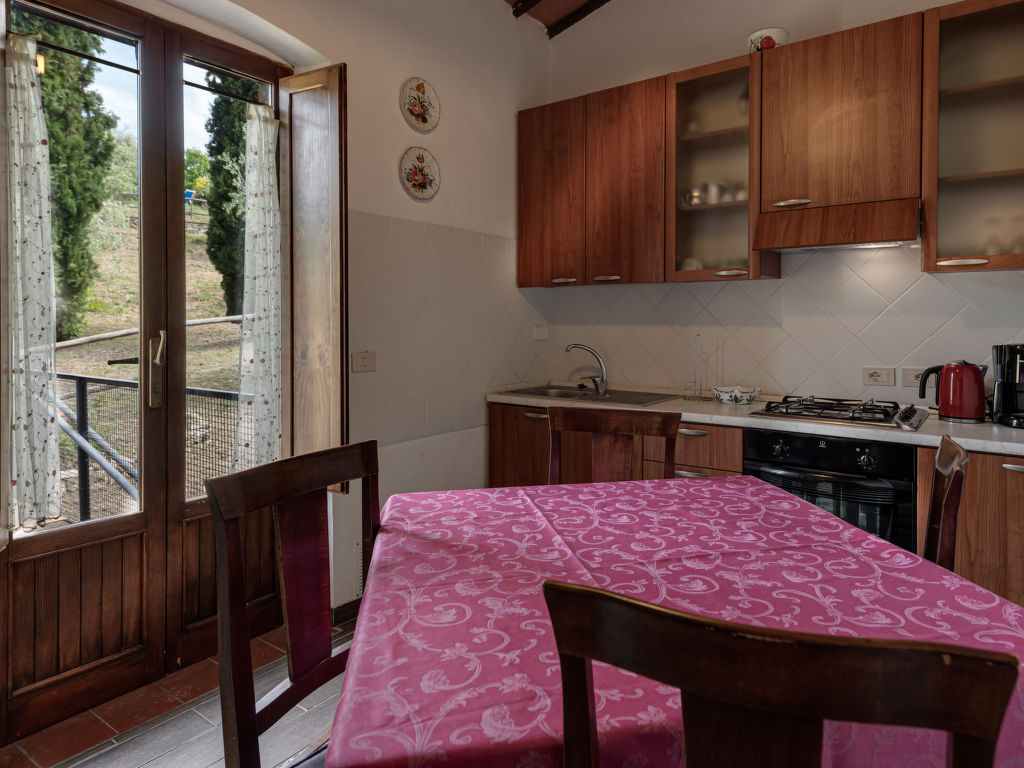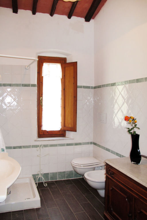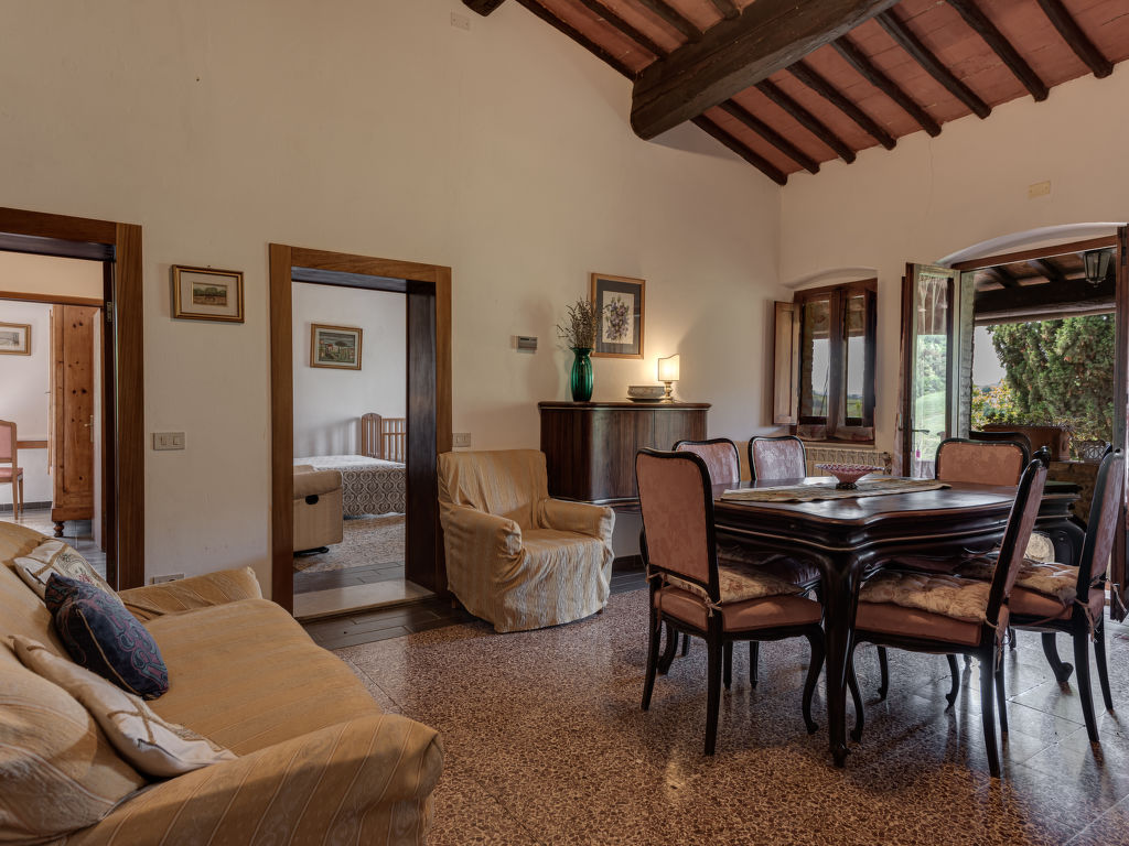 "Le Sodole - Petunia", 5-Zimmer-Wohnung 140 m2 im 1. Stock. Objekt geeignet für 8 Erwachsene. Geräumig, zweckmässig und rustikal eingerichtet: Wohnzimmer mit offenem Kamin und Sat-TV. 1 Zimmer mit 1 Doppelbett. 1 Zimmer mit 2 Betten. 1 Zimmer mit 1 Doppelbett und Dusche/Bidet/WC. 1 Zimmer mit 2 Betten und Dusche/Bidet/WC. Grosse Küche (Backofen, Geschirrspüler, 4 Flammen, Tiefkühler, elektrische Kaffeemaschine) mit Esstisch. Ausgang zum Garten. 2 Duschen/Bidet/WC. G-Heizung (extra). Natursteinböden. Kleine Terrasse überdacht, Gartensitzplatz, Laube. Terrassenmöbel, Gartengrill, Liegestühle. Sehr schöne Sicht auf die Landschaft. Zur Verfügung: Waschmaschine, Kinderhochstuhl, Babybett bis 2 Jahre. Internet (Wireless LAN, gratis). Parkplatz Nr. 2. Bitte beachten: geeignet für Familien. Nichtraucher-Unterkunft. 1 Haustier/Hund erlaubt. Eigener Eingang. Zugang zum Gartensitzplatz über Brücke. Bei Belegung mit weniger Personen als der maximalen Personenzahl stehen nicht alle Schlafzimmer zur Verfügung.