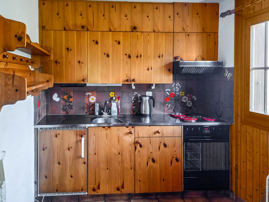 "Chalet 1619", 3-Zimmer-Chalet auf 2 Stockwerken. Komfortabel und mit viel Holz eingerichtet: Wohn-/Esszimmer mit offenem Kamin. (4 Kochplatten, Backofen). Obergeschoss: 2 Zimmer, jedes Zimmer mit 2 Betten. Ausgang zum Balkon. Dusche/WC. Balkon, Terrasse. Herrliche Sicht auf die Berge und die Landschaft. Bitte beachten: Nichtraucher-Unterkunft.