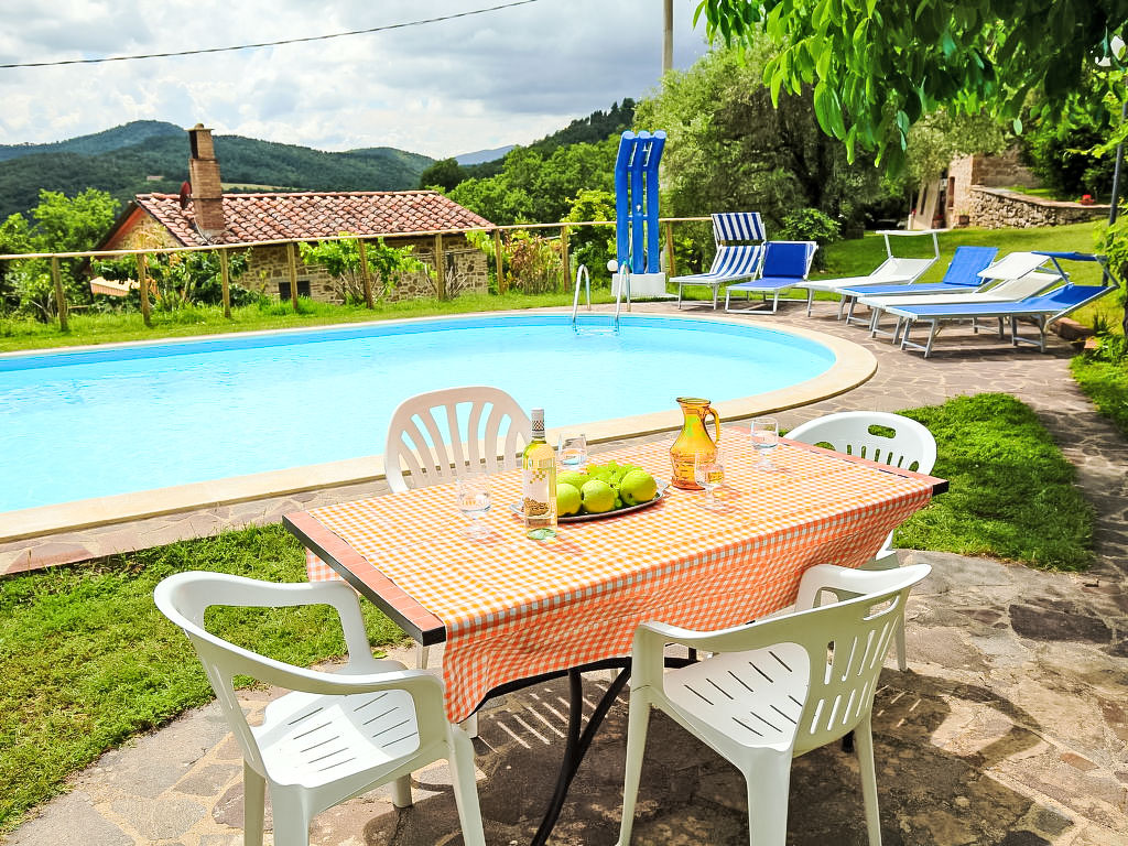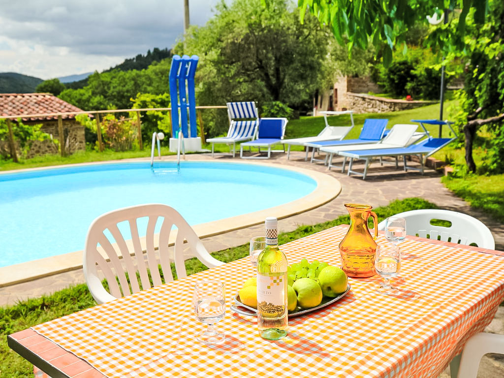 Landsitz "Ca' di Bacco", 525 m.ü.M., umgeben von Feldern. 3 Wohnungen im Ferienhaus. 30 km vom Zentrum von Cortona, alleinstehende Lage, im Grünen. Zur Mitbenutzung: Garten 1 ha (eingezäunt), Schwimmbad (12 x 6 m, 130 - 200 cm tief, saisonale Verfügbarkeit: 15.Mai.-25.Sep.). Aussendusche. Zur Alleinbenutzung: Grill. Im Hause: Internetzugang. Einkaufsservice vor Anreise möglich. Zufahrt (3 km Naturweg). Lebensmittelgeschäft 2 km, Supermarkt 10 km, Restaurant 5 km. Bekannte Seen in der Umgebung sind gut erreichbar: Trasimeno 30 km. Bitte beachten: Fahrzeug empfohlen. In dieser Anlage zusätzlich mietbar: 1 Haus. Das Leitungswasser hat keine Trinkwasserqualität.