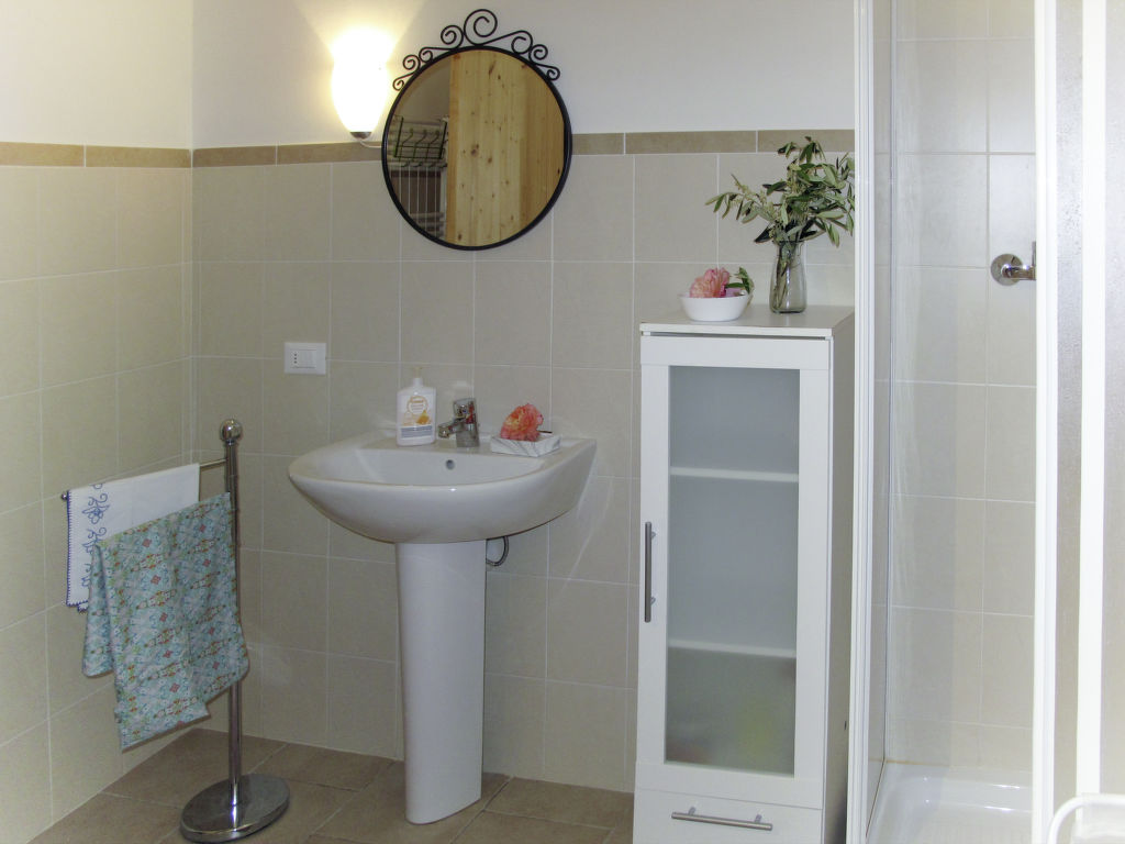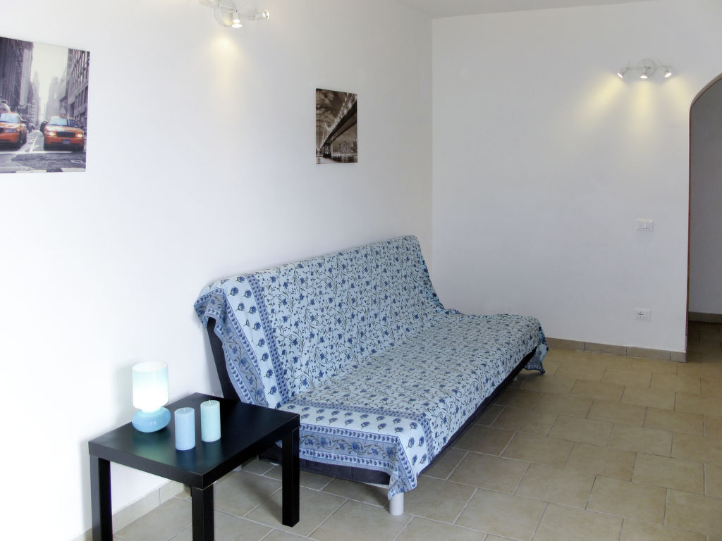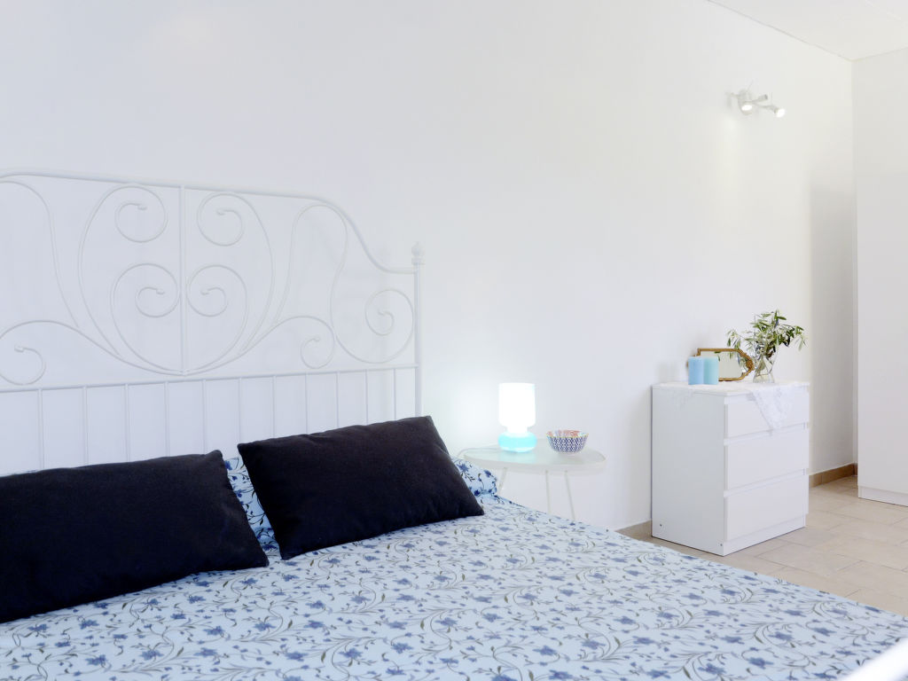 3-Zimmer-Wohnung 'Luca', 1. Etage (Hanglage), ca. 60 m². Separater, ebenerdiger Zugang. Wohnküche (4 Flammen, Backofen, Kühl-/Gefrierkombination, Kaffeemaschine, Toaster) mit Essplatz, Doppelbettcouch und Terrassenausgang. Schlafzimmer mit franz. Bett (1,60 m breit) und Doppelbettcouch. Schlafzimmer mit Doppelbett (1,60 m breit) und Terrassenausgang. Dusche/Bidet/WC. Flexibilität bei der Bettenaufteilung: Es stehen mehr Schlafmöglichkeiten zur Verfügung als die maximal zugelassene Personenzahl, diese darf dennoch nicht überschritten werden. CITRA: 008047-LT-0024