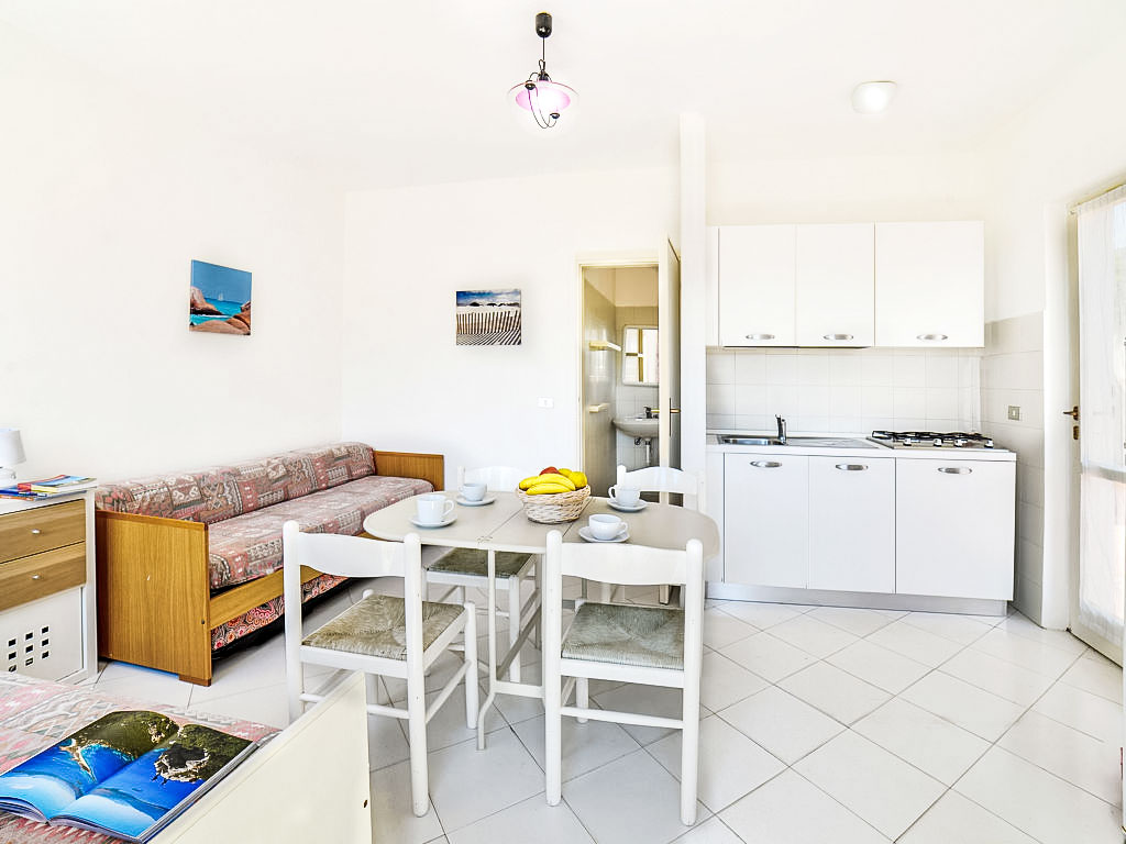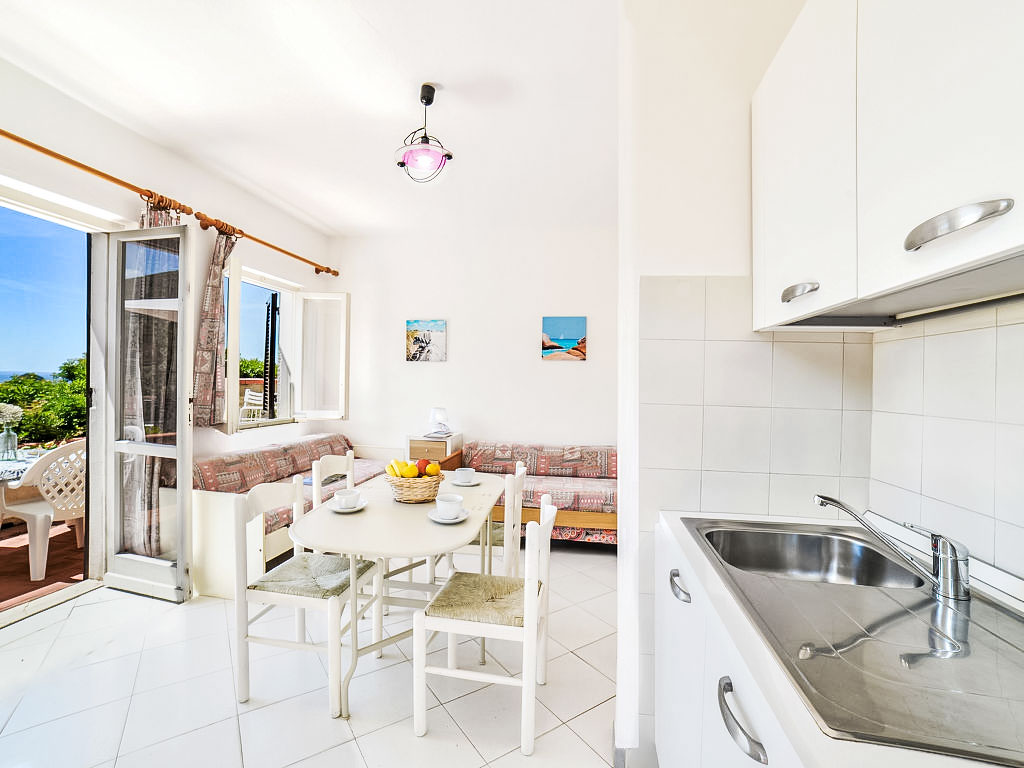 1-Zimmer-Wohnung 30 m2, im Erdgeschoss. Einfach eingerichtet: Wohnzimmer mit 1 Doppeldiwanbett. Ausgang zur Terrasse. Kochnische). Dusche/Bidet/WC. Terrasse. Sicht auf das Meer. Zur Verfügung: Internet (Wireless LAN, gratis). Parkplatz Nr. 1 (1 Auto). 1 Haustier/Hund erlaubt.