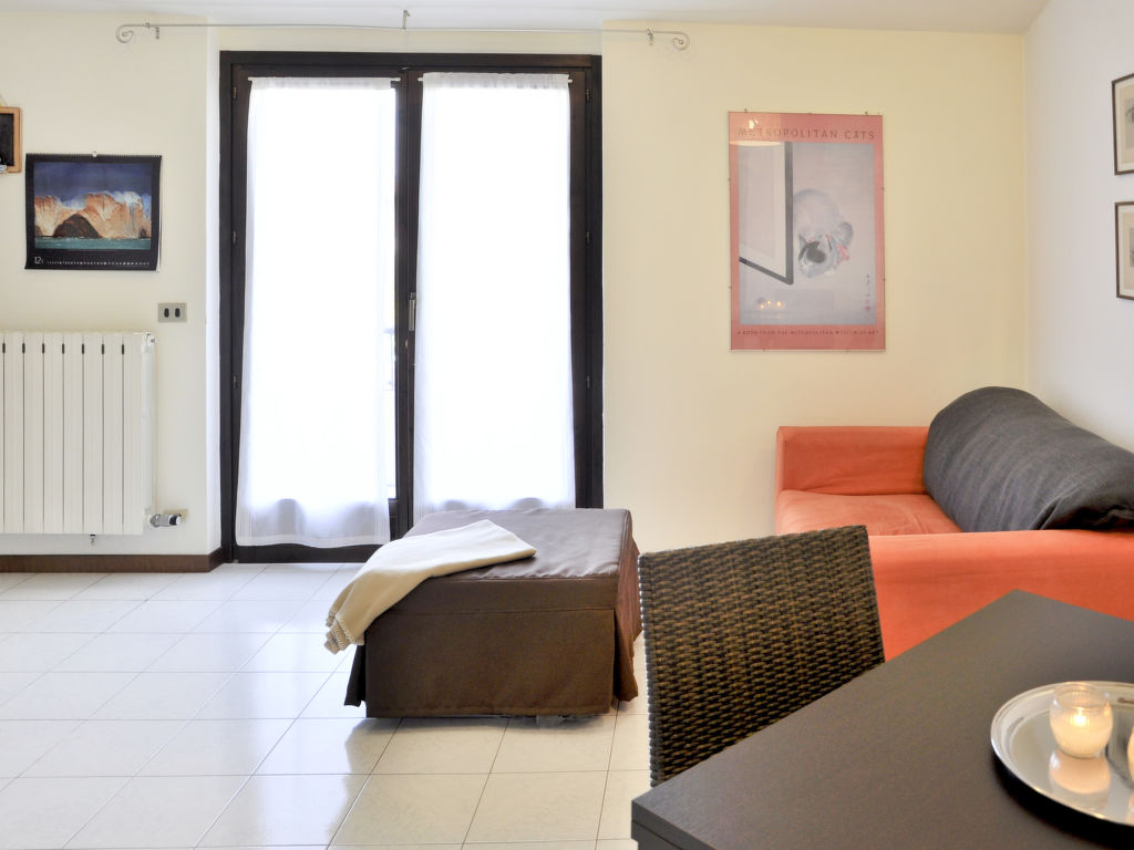 2-Zimmer-Wohnung, Obergeschoss, ca. 50 m². Wohn-/Schlafraum mit Bettcouch und Schlafsessel, Essplatz und Balkonausgang. Kleine Küche (4 Flammen, Mikrowelle, Kühl-/Gefrierkombination). Doppelzimmer. Dusche/WC. CIR:M0230430585