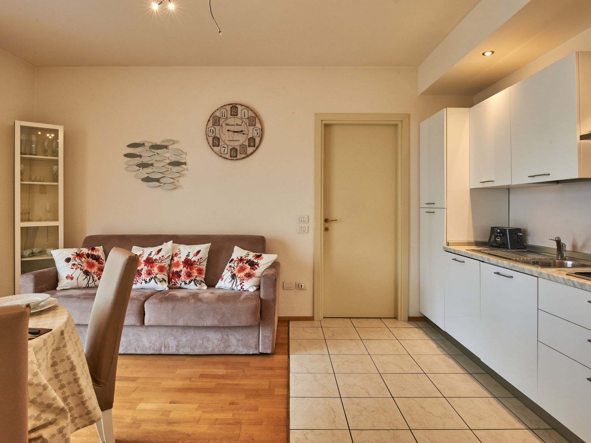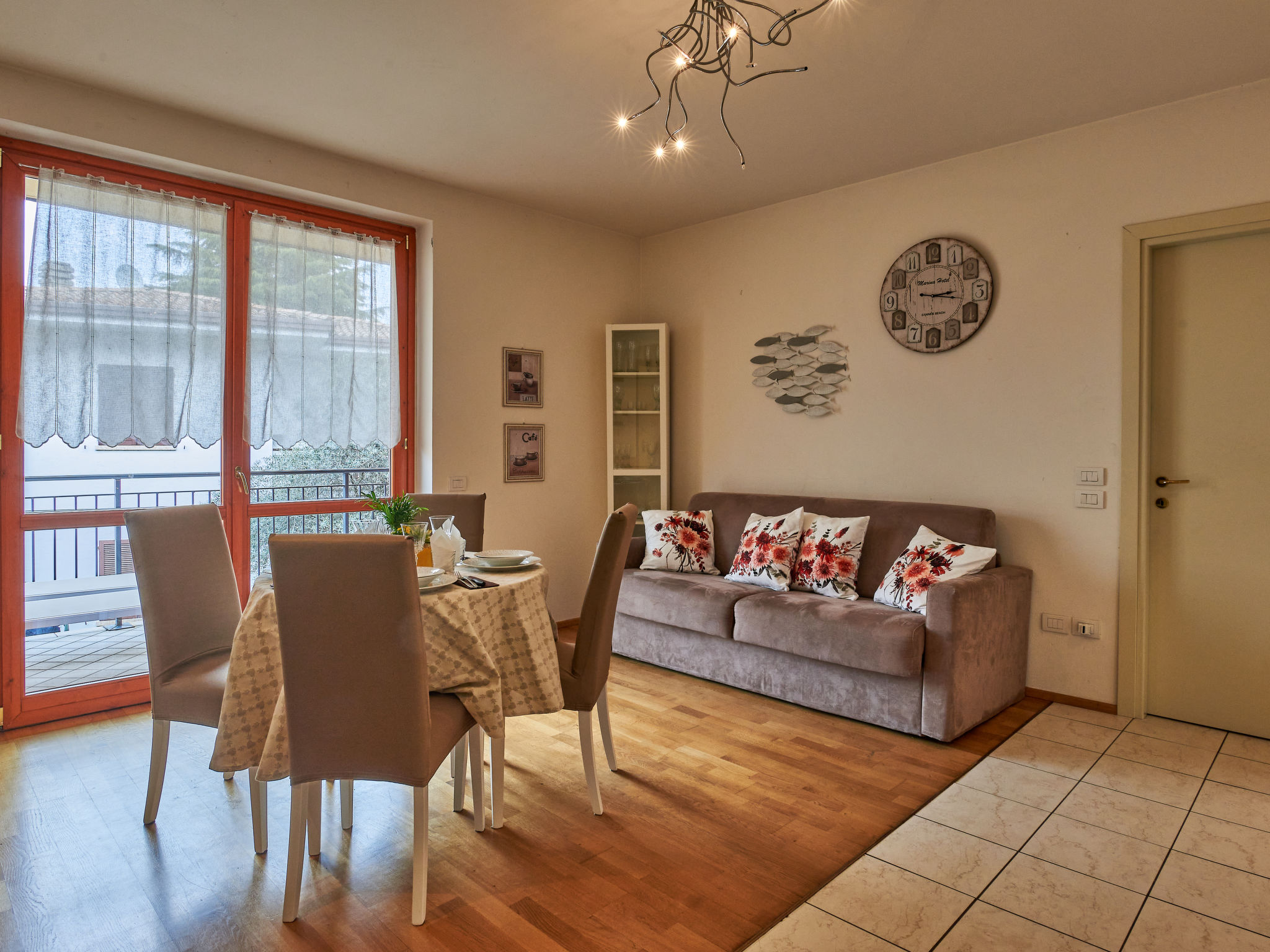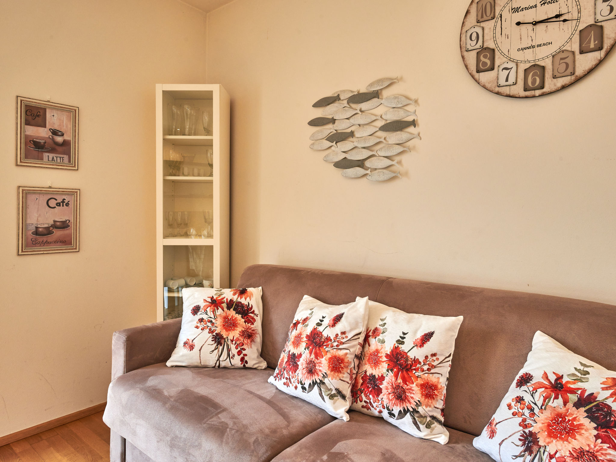 "Angela", 2-Zimmer-Wohnung 55 m2 im 1. Stock. Objekt geeignet für 2 Erwachsene + 2 Kinder. Modern eingerichtet: Wohn-/Schlafzimmer mit 1 Diwanbett, 1 Ausziehbett, Esstisch, TV und Klimaanlage. Ausgang zum Balkon. 1 Doppelzimmer mit Klimaanlage. Offene Küche (Backofen, Geschirrspüler, 4 Flammen, Wasserkocher, Mikrowelle, Tiefkühler, elektrische Kaffeemaschine). Dusche/Bidet/WC. G-Heizung. Parkettböden. Balkon. Balkonmöbel. Sicht auf den Garten. Zur Verfügung: Waschmaschine. Internet (Wireless LAN, extra). Parkplatz (1 Auto). Bitte beachten: Nichtraucher-Unterkunft. Es werden keine zusätzlichen Gebühren vor Ort fällig, ausgenommen der örtlichen Kurtaxe. 017179-CNI-00340