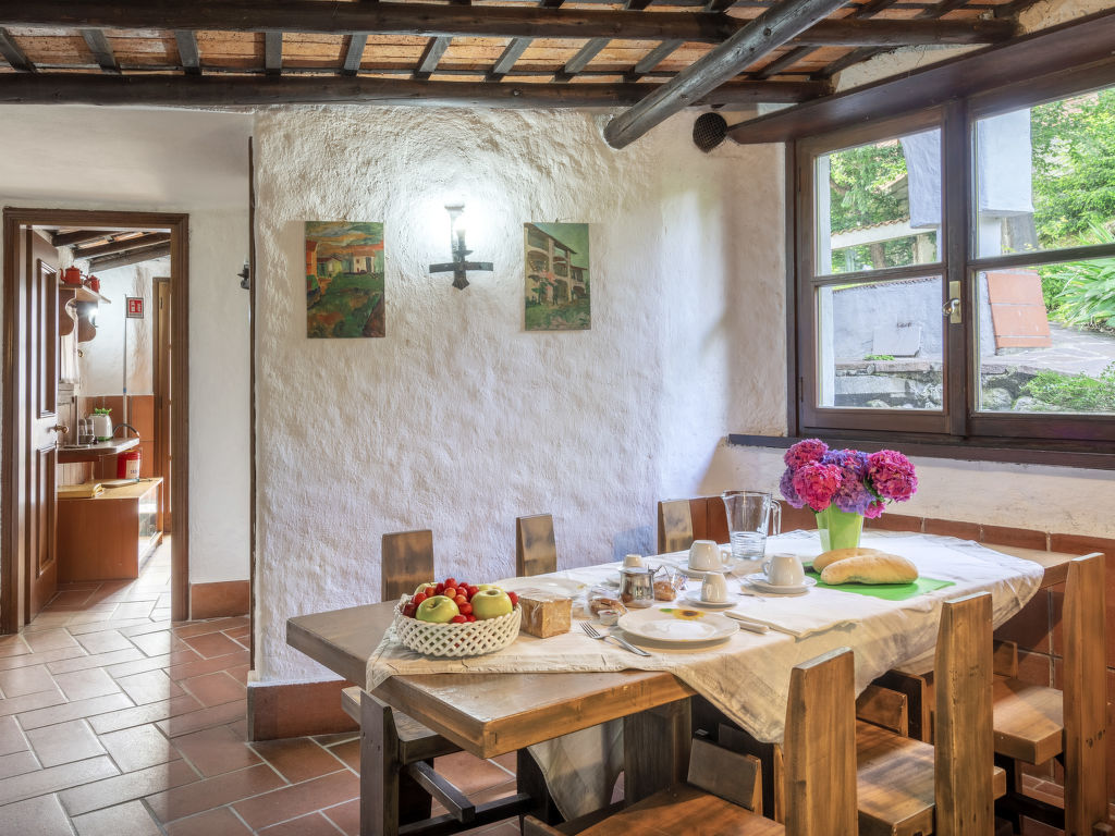 Die Ferienhäuser CASA NEL BOSCO und CASA DEL PITTORE stehen nebeneinander auf einer Anhöhe im Wald, am Ende einer Stichstraße, ca. 750 m außerhalb des Ortsteils Arolo. Ortsmitte Leggiuno mit Einkaufsmöglichkeit 2,3 km. Supermarkt in Laveno, 9 km. Felsstrand ca. 130 m zu Fuß über teils steilen Waldweg. Kleiner Hafen, Kiesel- und Grasstrand, je 1,4 km. Zufahrt ca. 800 m über teils schmale, ansteigende Schotterstraße. Jeweils 1 Parkplatz am Haus, weitere Parkmöglichkeiten auf dem Grundstück. Ca. 120 m² großes, terrassiertes Wiesengrundstück in Hanglage zur gemeinsamen Nutzung der Feriengäste. Im oberen Grundstücksbereich ein weiteres, unbewohntes Ferienhaus. Von hier schöner Seeblick. Zu LGI 220 gehört ein umlaufender, schmaler Balkon, ein kleiner Balkon und eine möblierte Dachterrasse (Zugang über Leiter). LGI 221 hat einen Balkon und eine unterhalb des Hauses gelegene, überdachte Terrasse mit Gartenmobiliar und gemauertem Grill. Die Ferienhäuser wurden in traditioneller Bauweise, unter Verwendung ortstypischer Materialien gebaut. Feriengerechte, teils rustikale Einrichtung. Fliesenboden. Sat-TV. Pelletkaminofen in LGI 220, Kamin in LGI 221 (jeweils einzige Heizmöglichkeit). Hinweis: Rauchen ist in den Häusern nicht gestattet.