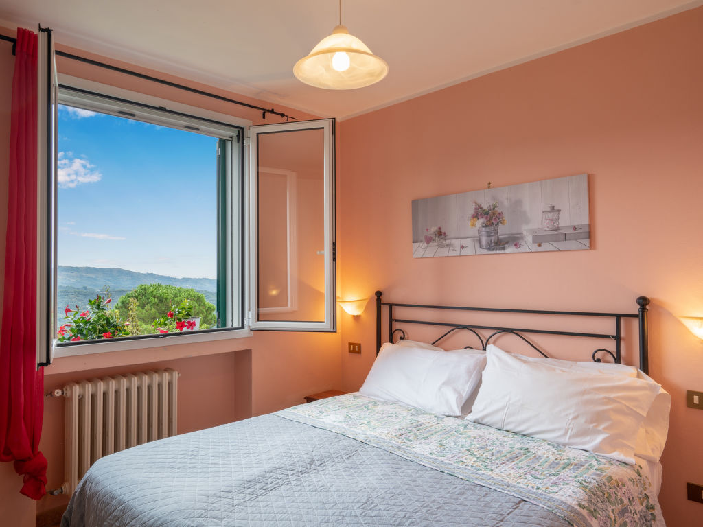Der AGRITURISMO SAN GIUSEPPE steht in einmaliger Aussichtslage, mit Blick bis zum Meer, ca. 100 m oberhalb der Ortsmitte von Valloria. Nächste Einkaufsmöglichkeit in Molini di Prelà, 4 km. Zu den Sand-, Kiesel- und Felsstränden von Imperia 14 km. Zufahrt bis zum Dorfplatz mit Parkplätzen, von dem ein ca. 100 m langer Treppenweg (64 Stufen) zum Haus hinaufführt. Auf Wunsch Gepäcktransport durch den Besitzer vom Dorfplatz zum Haus. Alternativ Zufahrt direkt bis zum Agriturismo über 2,5 km langen, ansteigenden, teils betonierten Waldweg (nicht für Autos mit geringer Bodenfreiheit geeignet). Parkmöglichkeit auf dem Grundstück. Auf dem terrassierten Hanggrundstück wachsen Obst- und Olivenbäume, der Wohn- und Poolbereich ist mit Blumen, Sträuchern und kleinen Rasenflächen hübsch angelegt. Am schönen Panoramapool (6 x 5 m, geöffnet 9.4. - 26.11.) Terrasse mit Gartenmöbeln, Liegen und Außendusche. Sommerküche (2 Ceranfelder, Spülbecken, Kaffeemaschine, Wasserkocher, Toaster). Etwas unterhalb Gemeinschaftsfreisitz unter Bäumen mit gemauertem Grill. Im Garten Sprudelbad (2 x 2 m, € 10/30 Min., Anmeldung) für 5 Personen. Tischfußball, Tischtennisplatte, Boccia. Außenbeleuchtung. Ca. 200 m oberhalb Tennisplatz mit Kunstrasen und Flutlicht (kostenlos, Schläger und Bälle inklusive). Auf Wunsch Tennisunterricht (€ 15/Stunde, Buchung und Bezahlung am Ort). Verleih von E-Mountainbikes (€ 50/Tag), geführte Touren in den ligurischen Seealpen. Waschstation und Garage für Fahrräder. Geführte Wanderungen und Radtouren in die Berge mit Picknick (Absprache und Bezahlung am Ort). Für Gruppen stellt der Besitzer auf Wunsch ein Programm zusammen, bspw. mit Besichtigung einer Ölmühle, Weinprobe, Kochkurs, Wanderungen, Canyoning, Mountainbiken, Grillabenden, im Herbst Teilnahme an der Olivenernte und -ölpressung. In der Anlage kleiner Laden (Selbstbedienung) mit Verkauf von Wein, Grappa, Olivenöl, Pesto und Honig (je nach Saison) aus eigener Herstellung. Brötchenservice. Auf Wunsch Frühstück (€ 5, Absprache und Bezahlung am Ort). Das Restaurant auf der Dorf-Piazza, das vom Besitzer geführt wird, bietet für unsere Gäste ein mehrgängiges ligurisches Menü (€ 25 pro Person, Bestellung und Bezahlung am Ort). Jeden Montag Aperitif mit Buffet, Pizza-Abende von Dienstag bis Donnerstag (bis Pfingsten/ab Oktober nur am Wochenende geöffnet).