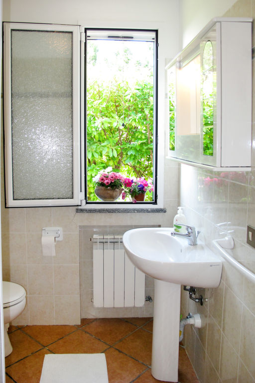 2-Zimmer-Wohnung 'Giglio', Erdgeschoss, ca. 35 m². Wohn-/Schlafraum mit Doppelbettcouch, Essplatz, Küchenzeile (4 Flammen, Backofen, Geschirrspüler, Kühlschrank, Kaffeemaschine, Wasserkocher, Toaster), Terrassenausgang. Doppelzimmer (Bett 1,60 m breit). Dusche/WC. Klimaanlage. Vor dem Eingangsbereich überdachte Terrasse (15 m²) mit Blick bis zum Meer. CITR: 008047-AGR-0005