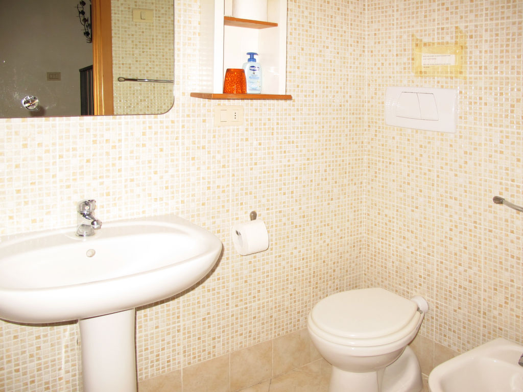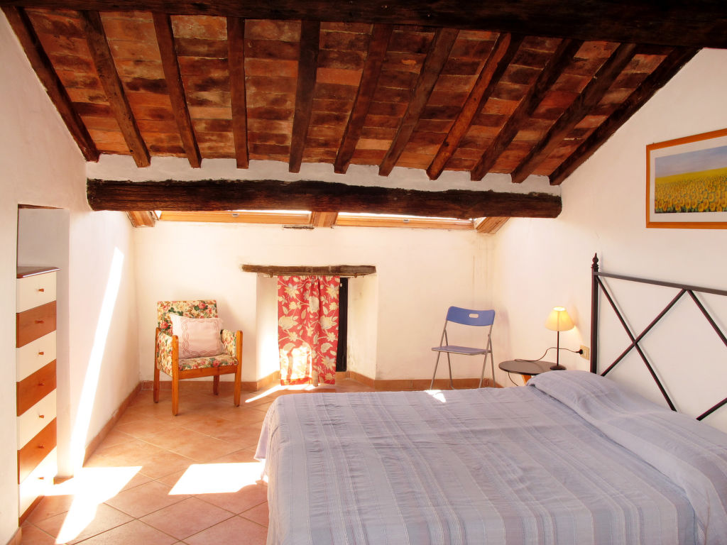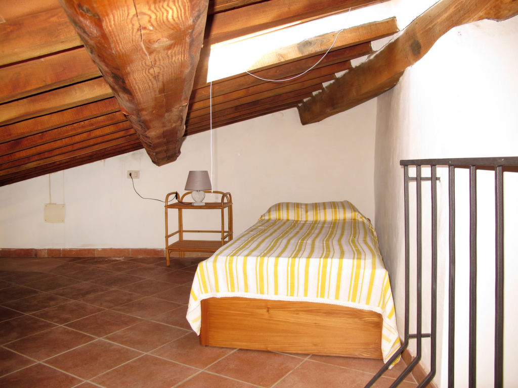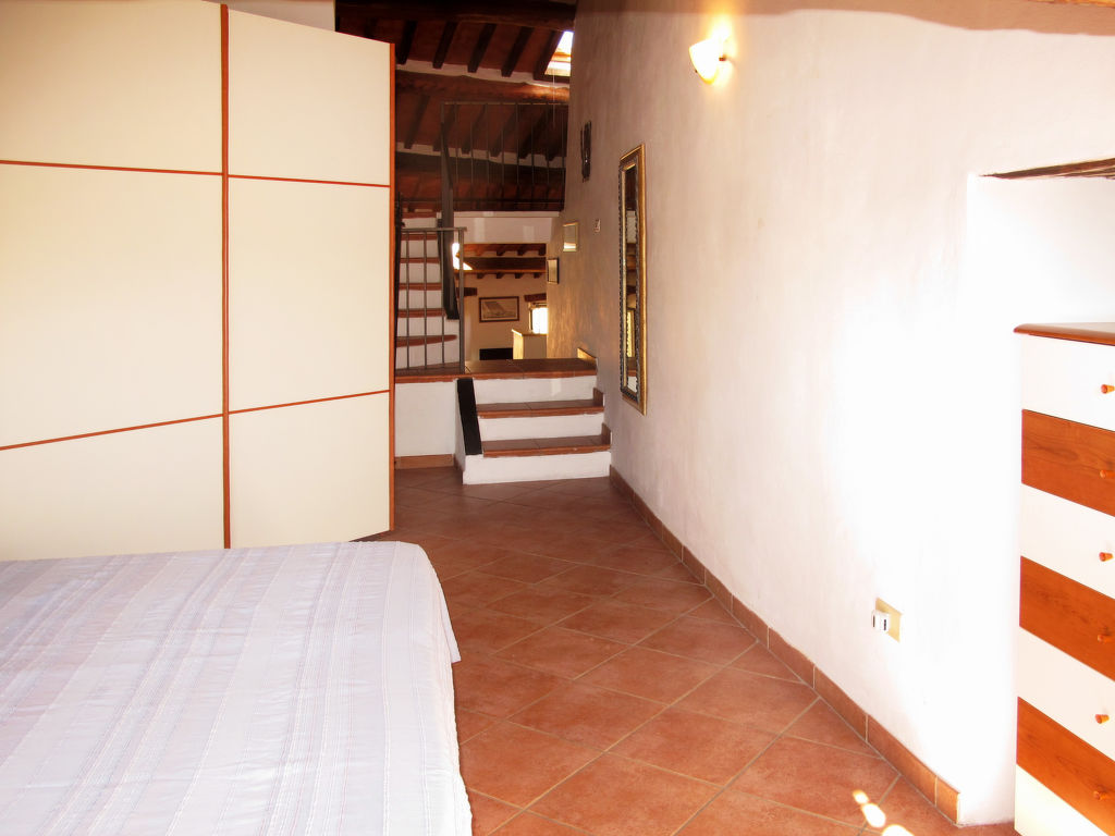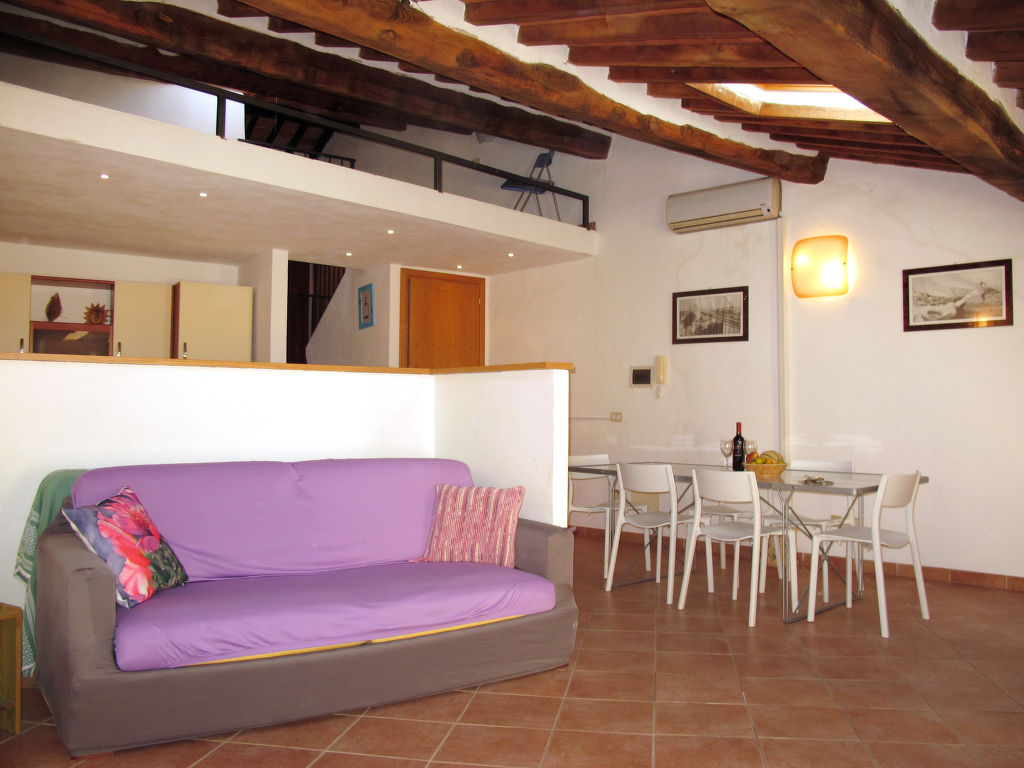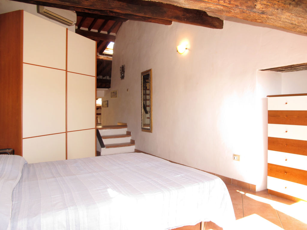 "Mansarda", 2-Zimmer-Wohnung 61 m2 auf 2 Stockwerken, im Dachgeschoss. Zweckmässig eingerichtet: Wohn-/Schlafzimmer mit 1 Doppeldiwanbett, Esstisch, TV, Klimaanlage und Warmluftheizung. 1 abgeschrägtes, offenes Zimmer mit 1 Doppelbett, Klimaanlage und Warmluftheizung. Offene Küche (4 Kochplatten, Mini-Backofen, Wasserkocher). Dusche/Bidet/WC. Obergeschoss: 1 abgeschrägtes, offenes kleines Zimmer mit 1 Bett. Zur Verfügung: Waschmaschine. Bitte beachten: Nichtraucher-Unterkunft.