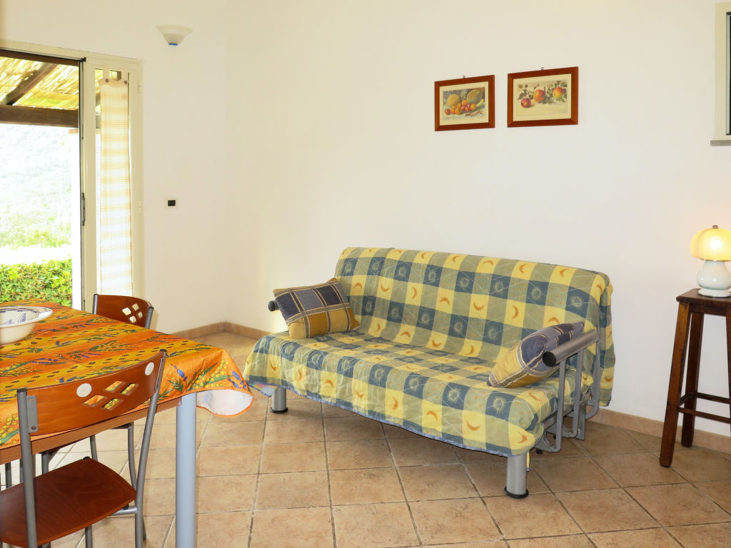 2-Zimmer-Doppelhaushälfte 30 m2, im Erdgeschoss. Zweckmässig und schön eingerichtet: Wohn-/Schlafzimmer mit 1 Doppeldiwanbett und Esstisch. Ausgang zur Terrasse. 1 Zimmer mit 1 franz. Bett (160 cm). Ausgang zur Terrasse. Kochnische (Backofen, 4 Flammen, Tiefkühler). Dusche/Bidet/WC. Keine Heizmöglichkeit. Terrasse 18 m2, überdacht. Terrassenmöbel. Schöne Sicht auf den Wald und das Meer. Zur Verfügung: Kinderhochstuhl, Babybett. Bitte beachten: Nichtraucher-Unterkunft. Maximal 2 Haustiere/Hunde erlaubt. Eigener Eingang.