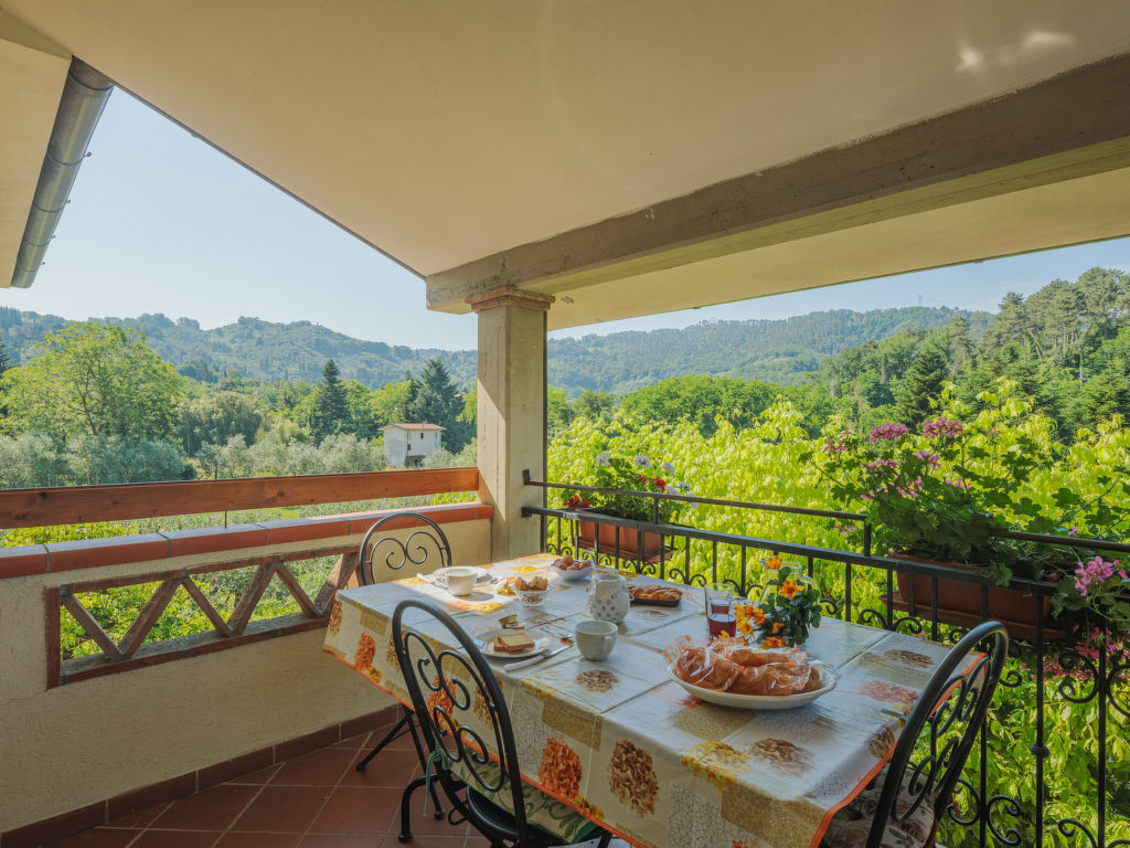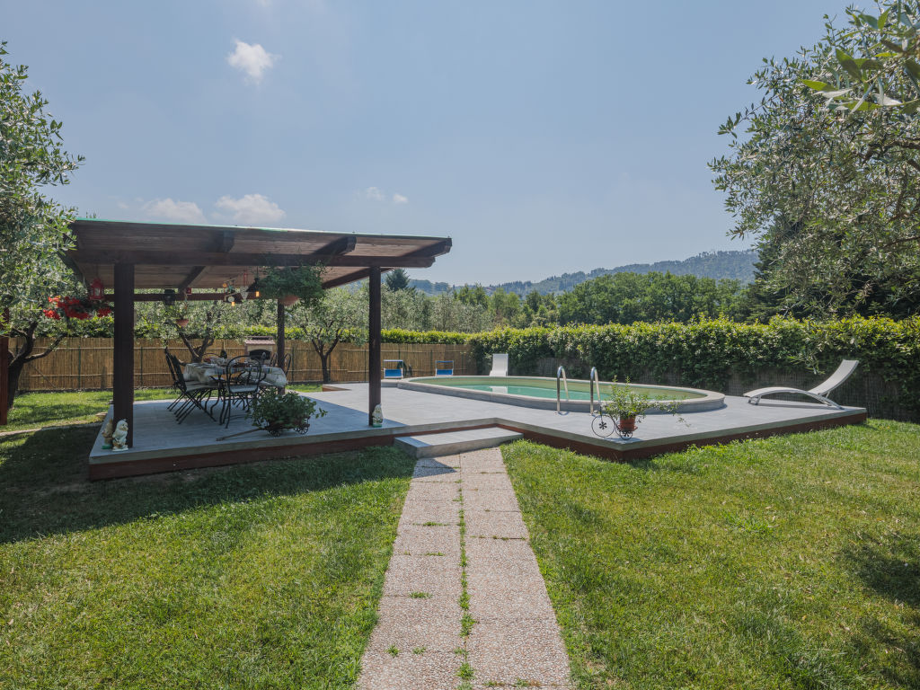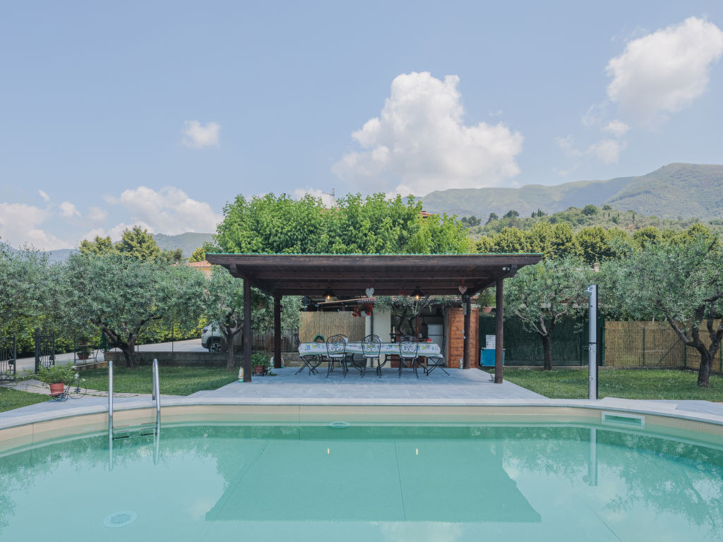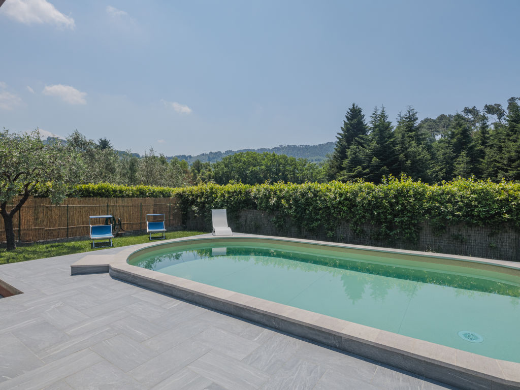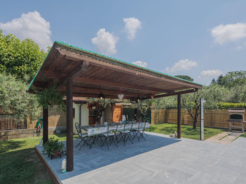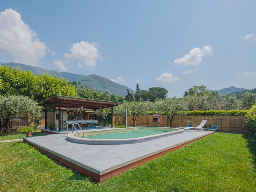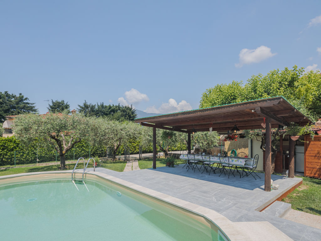 Das Dreifamilienhaus FONTANELLA steht am Ortsrand von Camaiore mit Einkaufsmöglichkeit, 1,5 km von der Ortsmitte entfernt. Supermarkt 3,5 km. Zu den Stränden von Lido di Camaiore 10 km. Elektrisches Einfahrtstor. 1 Parkplatz pro Wohnung auf dem Grundstück. Das Haus mit unseren beiden Ferienwohnungen und der Wohnung des Besitzers steht auf einem ca. 1000 m² großen, teilumzäunten Grundstück mit Rasen, Hecken und Olivenbäumen. Umzäunter Poolbereich mit ovalem Pool (7,4 x 3,7 m, 1,4 m tief, 02.05.-24.09.), überdachter, möblierter Holzterrasse, Liegewiese und 4 Sonnenliegen zur gemeinsamen Nutzung der Gäste. Gemeinsame Sommerküche (4 Flammen, Kühl-/Gefrierkombination), gemauerter Grill. Der Besitzer wohnt im Erdgeschoss mit separatem Zugang und unterhält einen Gemüsegarten auf dem Grundstück. Beide Ferienwohnungen haben jeweils eine überdachte, möblierte Terrasse mit Blick ins Grüne. Der Zugang zur Ferienwohnung CMA 121 erfolgt über die Terrasse von CMA 120. Gepflegte, rustikale Einrichtung. Jeweils Fliesenboden. Sat-TV. Internetzugang (WLAN, inklusive). Waschtrockner (CMA 120) bzw. Waschmaschine (CMA 121). In CMA 120 Pelletkaminofen (einzige Heizmöglichkeit), in CMA 121 Gas-Zentralheizung. Hinweis: Rauchen ist in den Wohnungen nicht gestattet.