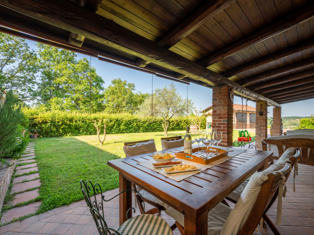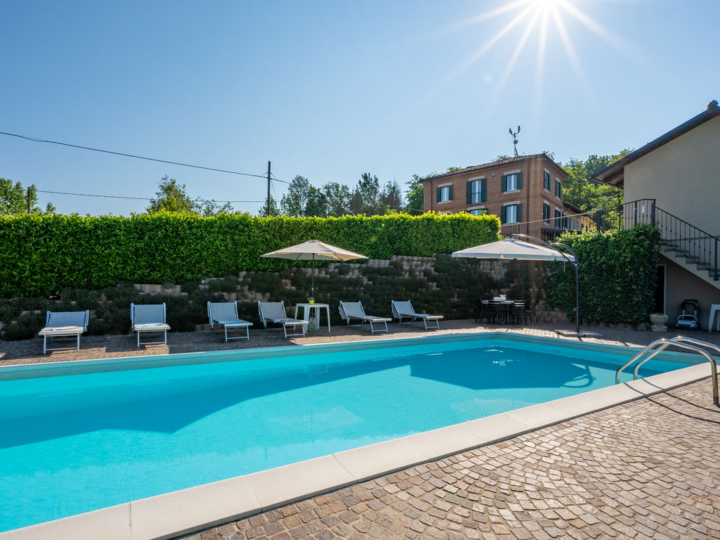 Das auf drei Seiten freistehende Landhaus MARMORITO steht ländlich, in einem locker bebauten Villenviertel, 3 km außerhalb von Portacomaro. Dort Lebensmittelgeschäft. Supermarkt 6 km. Schöne Hanglage mit weitem Panoramablick. Ferngesteuertes Einfahrtstor. Parkplätze auf dem Grundstück. Doppelgarage für 2 Pkw. Ca. 3000 m² großes, umzäuntes Gartengrundstück mit gepflegter Rasenfläche. In Panoramalage Pool (12 x 5 m, 1-2 m tief, 15.03.-30.10.) mit Sonnenterrasse (Mobiliar), Außendusche, Poolhaus mit Dusche/WC und Umkleidekabine. Am Haus überdachte, möblierte Terrasse mit transportablem Grill. Pizzaofen. 2 Balkone. 2x wöchentliche Gartenpflege sowie tägliche Poolpflege durch den Besitzer. Tischfußball. Kleiner Fitnessraum. Bei der Restaurierung des Ferienhauses wurde viel Wert auf die Erhaltung des ursprünglichen Charakters mit z.T. Gewölbedecken gelegt. Gepflegte Einrichtung mit geschmackvollen Möbeln, teils mit Antiquitäten. Fliesenböden. Gute Ausstattung: Sat-TV. Stereoanlage. DVD. CD. Internetzugang (WLAN, inklusive). Waschmaschine. Trockner. Alarmanlage. Klimaanlage in den Schlafzimmern. Gas-Zentralheizung. Hinweise: Die 2. Etage bleibt verschlossen. Rauchen ist im Haus nicht gestattet.