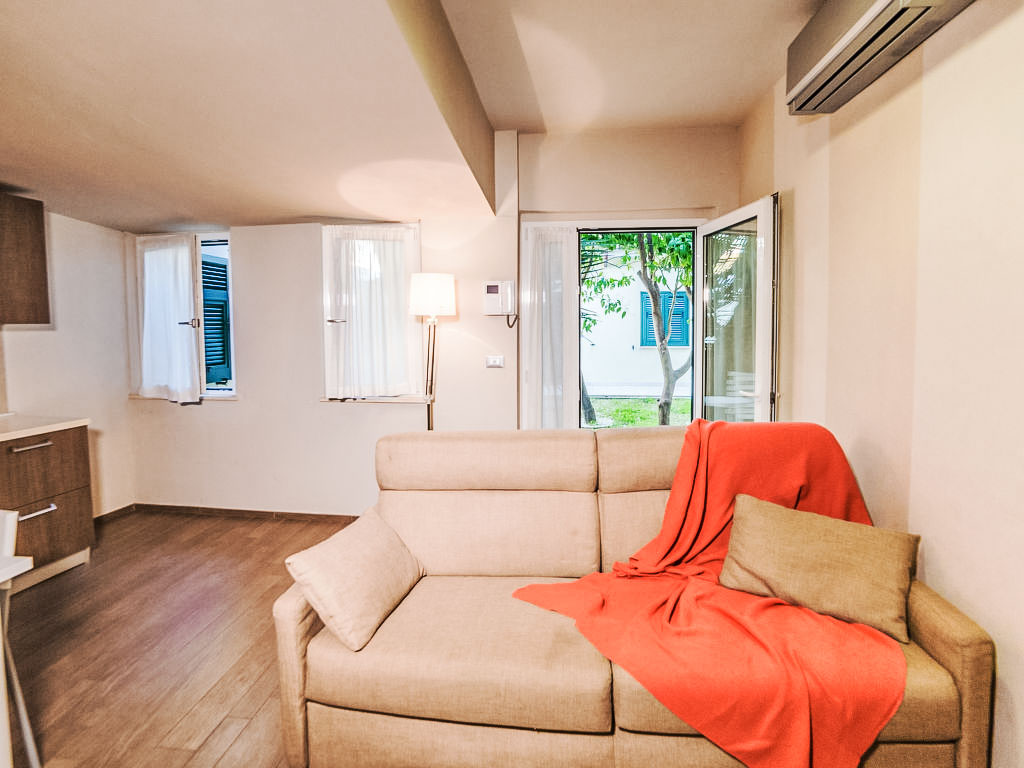 2-Zimmer-Wohnung 40 m2, im Erdgeschoss. Zweckmässig eingerichtet: Wohn-/Esszimmer mit TV. 1 Doppelzimmer. Kochnische (4 Kochplatten, Backofen, Tiefkühler). Dusche/Bidet/WC. Heizung, Klimaanlage. Heizung nur verfügbar von 01.11. bis 31.03. Zur Verfügung: Safe. Bitte beachten: Wohnung auf Hofseite. 1 Haustier/Hund erlaubt.