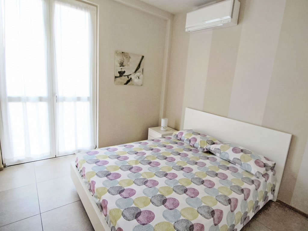 2-Zimmer-Wohnung 40 m2. Zweckmässig eingerichtet: Wohn-/Esszimmer mit 1 Doppeldiwanbett und TV. Ausgang zum Balkon. 1 Doppelzimmer. Kochnische (4 Kochplatten, Backofen, Mikrowelle, Tiefkühler). Dusche/Bidet/WC. G-Heizung, Klimaanlage. Heizung nur verfügbar von 01.11. bis 31.03. Kleiner Balkon. Zur Verfügung: Safe. 1 Haustier/Hund erlaubt.