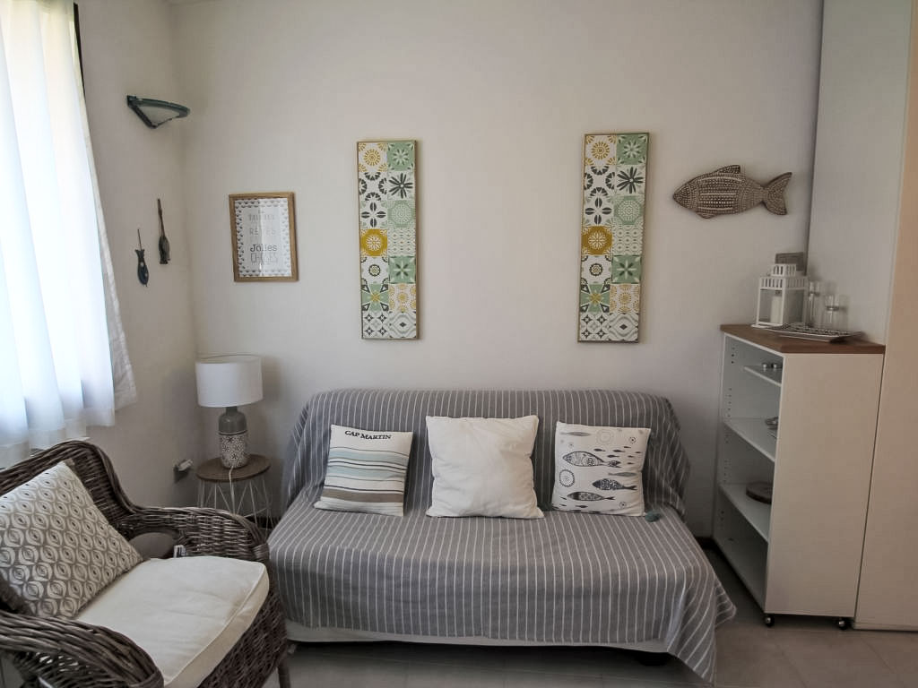"Patrizia", 2-Zimmer-Wohnung 45 m2, im Erdgeschoss. Zweckmässig und gemütlich eingerichtet: Wohn-/Esszimmer mit 1 Doppeldiwanbett und TV. Ausgang zum Garten. 1 Doppelzimmer. Ausgang zum Gartensitzplatz. Kochnische (4 Kochplatten, Mikrowelle, Tiefkühler). Dusche/Bidet/WC. G-Heizung (extra). Heizung nur verfügbar von 15.10. bis 15.04. Gartensitzplatz 8 m2, Garten 35 m2. Terrassenmöbel. Zur Verfügung: Waschmaschine, Bügeleisen, Haartrockner. Parkplatz. 1 kleines Haustier/Hund erlaubt. CITRA: 011021-LT-0010