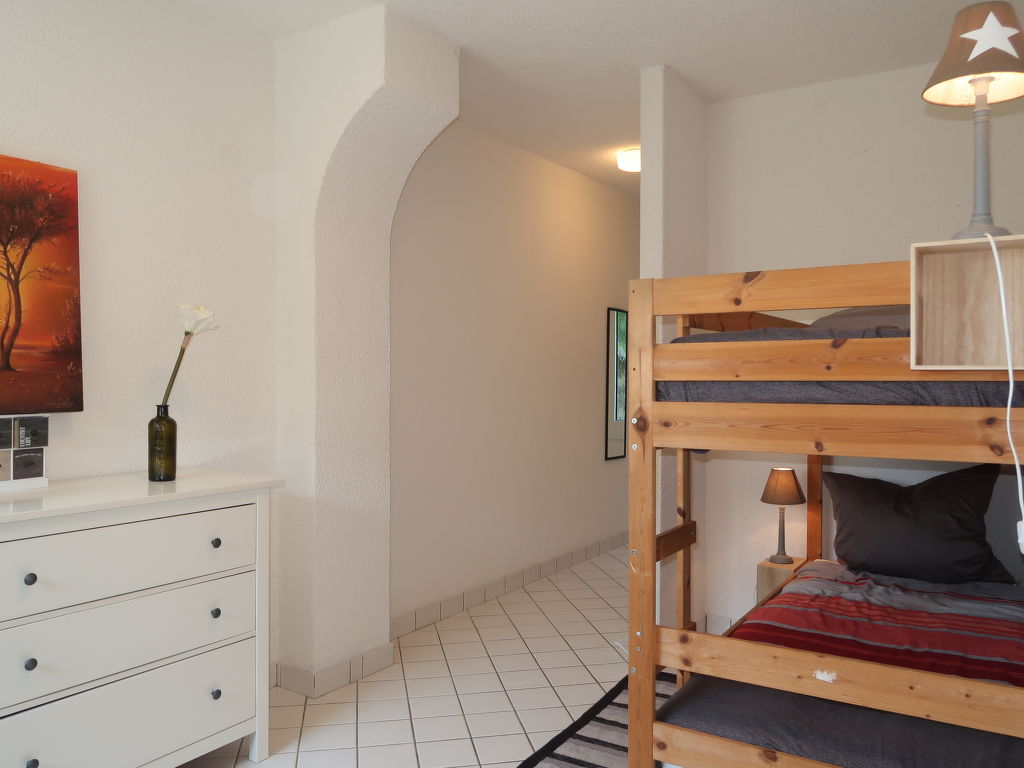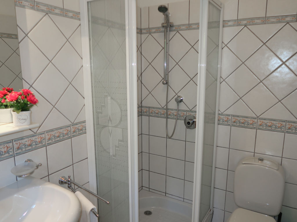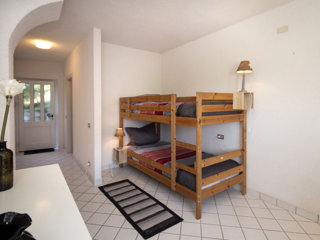 3-Zimmer-Haus, 2 Etagen (keine interne Verbindung zwischen den Etagen), ca. 110 m². Erdgeschoss: Schlafzimmer mit Doppelbett und Bettcouch (1,50m lang), Zugang zu Dusche/WC und Ausgang ins Freie. Schlafzimmer mit Bettcouch, Etagenbett und Ausgang ins Freie. Dusche/WC. Vom Erdgeschoss seitliche Außentreppe (18 Stufen) ins Obergeschoss: Wohnraum mit Sitzgruppe, Sitzecke mit Kamin (Einsatz) und breiter Fensterfront (Schiebetür) zum Balkon, zum Wohnraum offener Essbereich, zum Essbereich offene Kochnische (4 Flammen, Backofen, Geschirrspüler, Kühlschrank, Kaffeemaschine, Toaster) mit Terrassenausgang. Sep.WC. Maximale Belegung: 4 Erwachsene und 1 Kind. CIR: 012114-CNI-00046