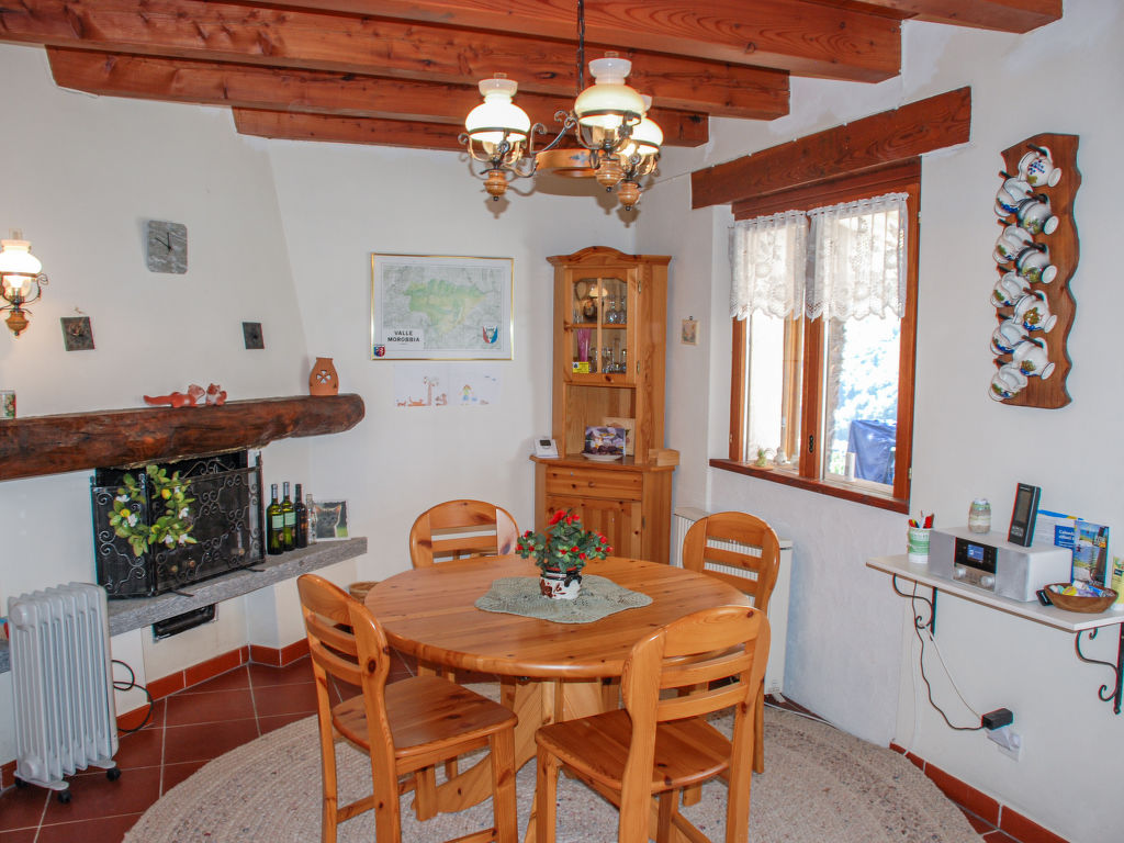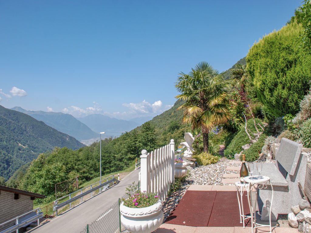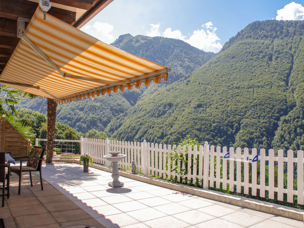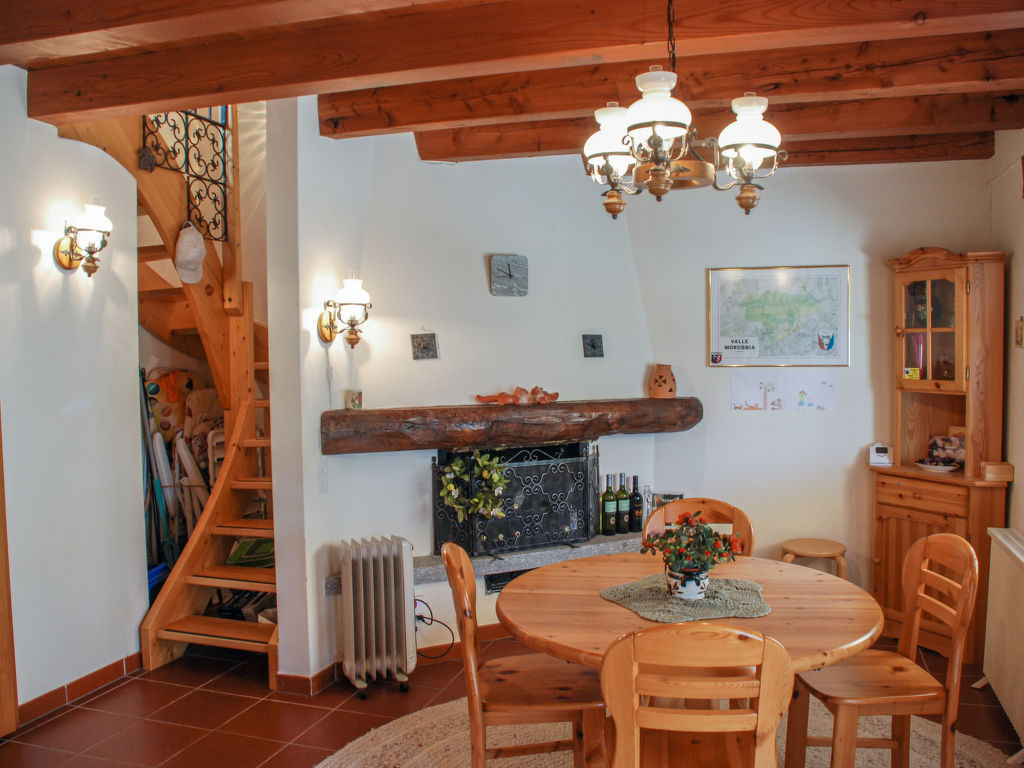 "Ronchetto Melera", 3-Zimmer-Haus 75 m2 auf 3 Stockwerken. Objekt geeignet für 2 Erwachsene + 2 Kinder. Geräumig, teilweise abgeschrägt, schön und rustikal eingerichtet: offenes Wohn-/Schlafzimmer mit 1 Diwanbett (160 cm, Länge 190 cm), Schwedenofen und Sat-TV (Flachbildschirm), Radio, CD und E-Heizung. Ausgang zum Balkon. Unteres Geschoss: grosse Wohnküche (Backofen, 4 Glaskeramikherd Platten, Toaster, Wasserkocher, elektrische Kaffeemaschine, Kapseln für die Kaffeemaschine (Nespresso) extra, Racletteofen, Fondue Set (Käse)) mit offenem Kamin (nur Deko), Esstisch. Ausgang zur Terrasse, Pergola, zum Gartensitzplatz. Dusche/WC. E-Heizung. Obergeschoss: (Wendeltreppe) 1 Doppelzimmer mit 1 Doppelbett (2 x 90 cm, Länge 200 cm), sep. WC. Südlage, grosse Terrasse teilweise überdacht, Südlage. Terrassenmöbel, Balkonmöbel, Liegestühle. Herrliche Panoramasicht auf die Berge, das Tal und die Landschaft. Zur Verfügung: Bügeleisen, Kinderhochstuhl, Babybett bis 2 Jahre (extra), Haartrockner. Internet (Wireless LAN, gratis). Bitte beachten: geeignet für Familien. Nichtraucher-Haus.