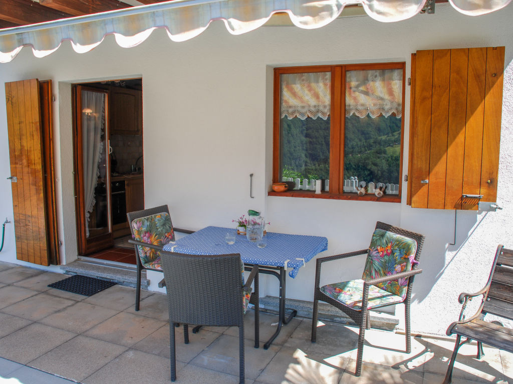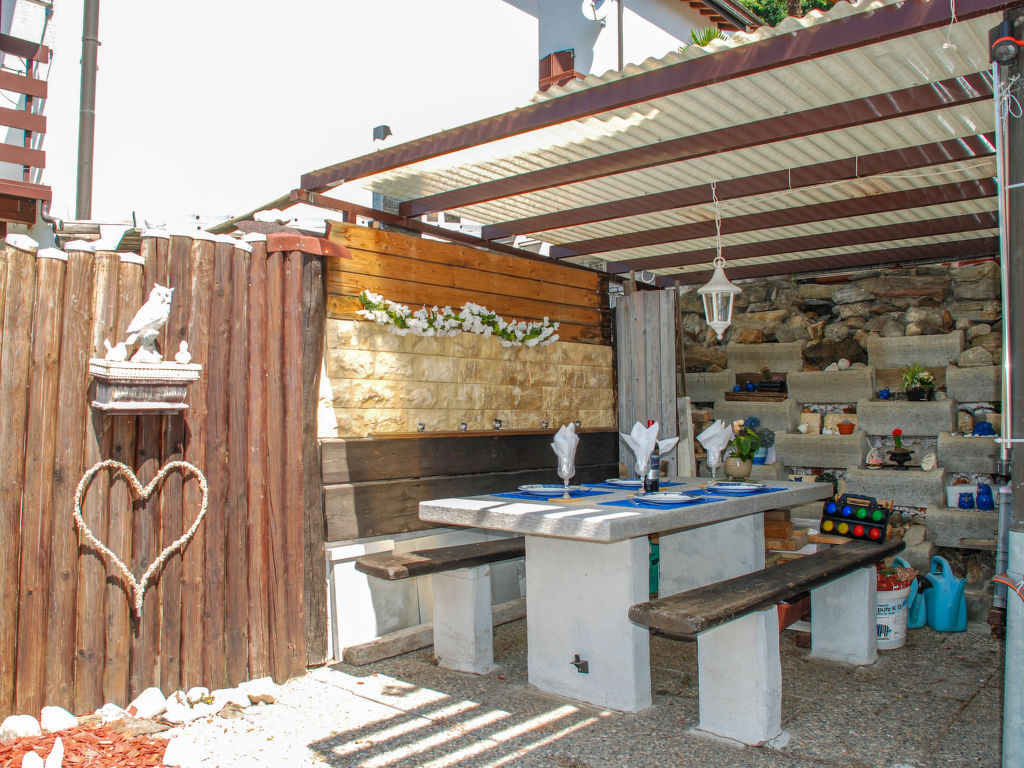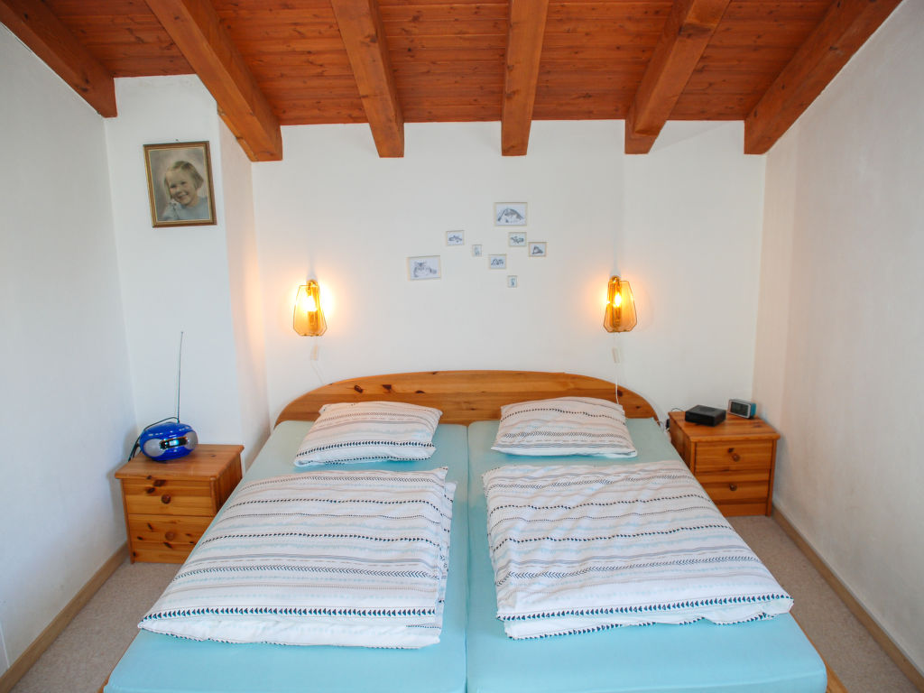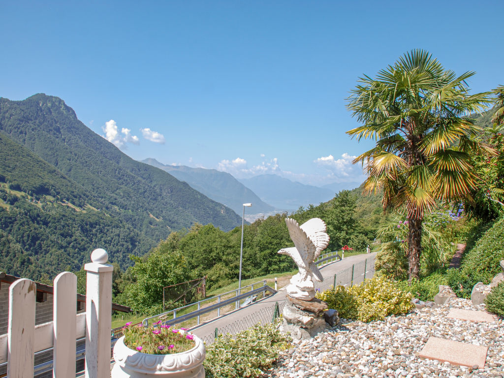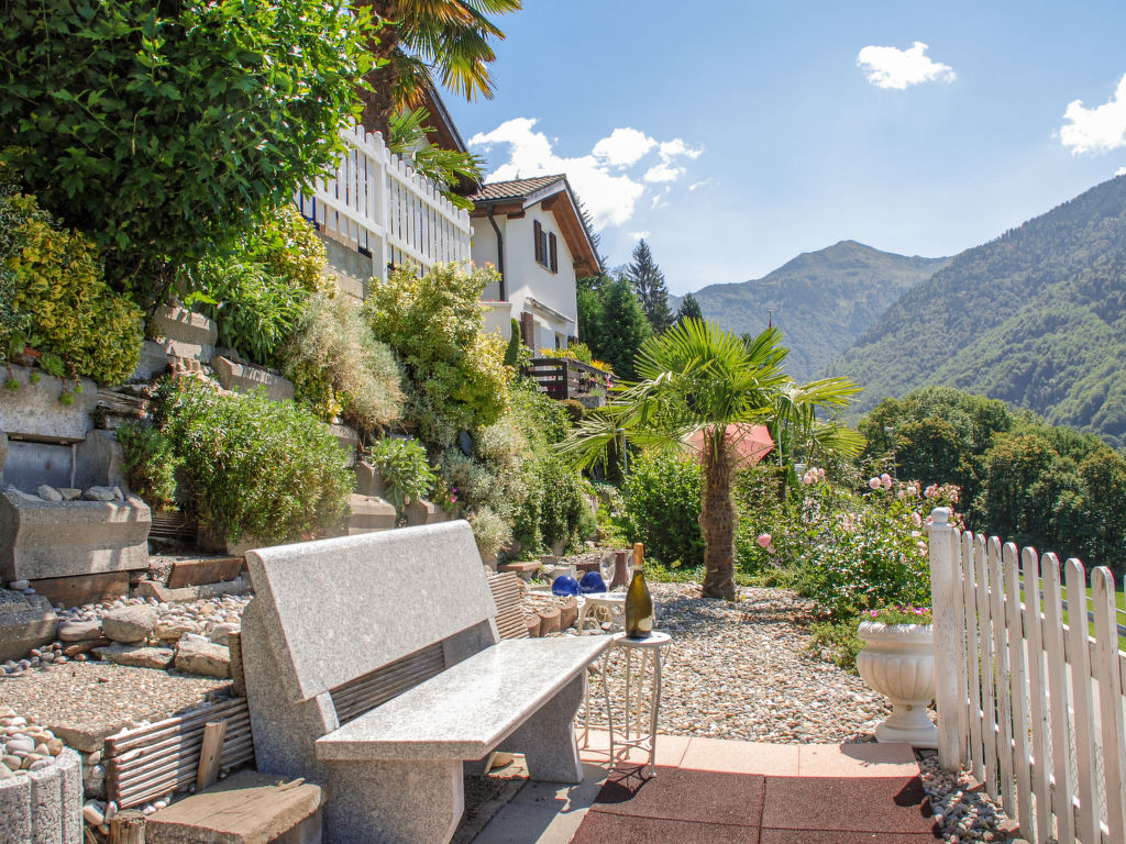 "Ronchetto Melera", 3-Zimmer-Haus 75 m2 auf 3 Stockwerken. Objekt geeignet für 2 Erwachsene + 2 Kinder. Geräumig, teilweise abgeschrägt, schön und rustikal eingerichtet: offenes Wohn-/Schlafzimmer mit 1 Diwanbett (160 cm, Länge 190 cm), Schwedenofen und Sat-TV (Flachbildschirm), Radio, CD und E-Heizung. Ausgang zum Balkon. Unteres Geschoss: grosse Wohnküche (Backofen, 4 Glaskeramikherd Platten, Toaster, Wasserkocher, elektrische Kaffeemaschine, Kapseln für die Kaffeemaschine (Nespresso) extra, Racletteofen, Fondue Set (Käse)) mit offenem Kamin (nur Deko), Esstisch. Ausgang zur Terrasse, Pergola, zum Gartensitzplatz. Dusche/WC. E-Heizung. Obergeschoss: (Wendeltreppe) 1 Doppelzimmer mit 1 Doppelbett (2 x 90 cm, Länge 200 cm), sep. WC. Südlage, grosse Terrasse teilweise überdacht, Südlage. Terrassenmöbel, Balkonmöbel, Liegestühle. Herrliche Panoramasicht auf die Berge, das Tal und die Landschaft. Zur Verfügung: Bügeleisen, Kinderhochstuhl, Babybett bis 2 Jahre (extra), Haartrockner. Internet (Wireless LAN, gratis). Bitte beachten: geeignet für Familien. Nichtraucher-Haus.