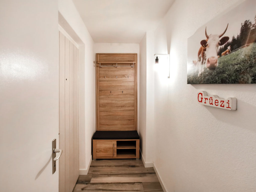 Gemütliches Mehrfamilienhaus "Gstein", 1'450 m.ü.M., renoviert im Jahre 2014. Im Ort, ruhige, sonnige Lage, 300 m vom Skigebiet. Zur Mitbenutzung: Grundstück, Garten. Im Hause: Fahrstuhl, Einstellraum für Fahrräder, Skiraum, Zentralheizung, Waschmaschine, Wäschetrockner (zur Mitbenutzung, extra). Zufahrt bis zum Haus (Bergstrasse). Parkplatz beim Haus. Einkaufsgeschäft, Lebensmittelgeschäft 50 m, Supermarkt 750 m, Restaurant, Bushaltestelle 50 m, Freibad, Thermalbad 900 m. Tennis 500 m, Luftseilbahn 150 m, Skilift, Skischule, Schlittelbahn 300 m, Eisfeld, Kinderspielplatz 500 m.
