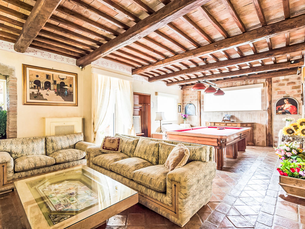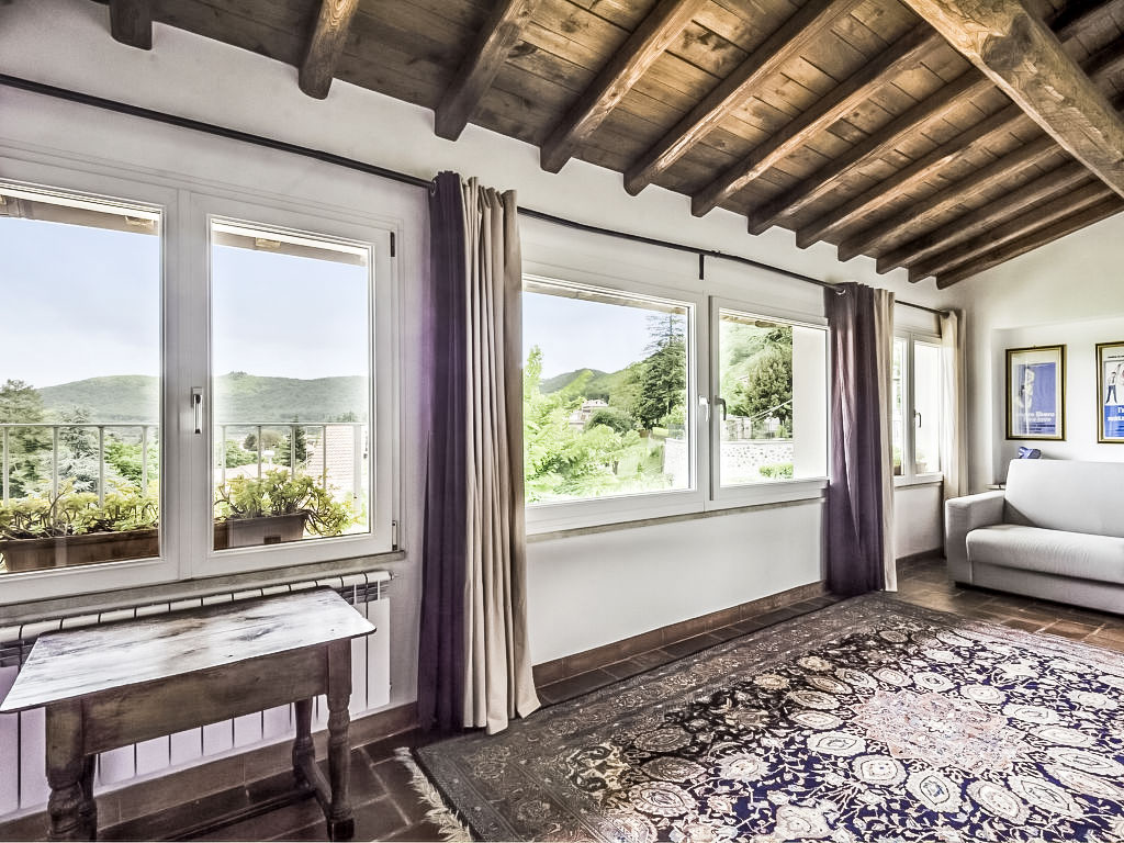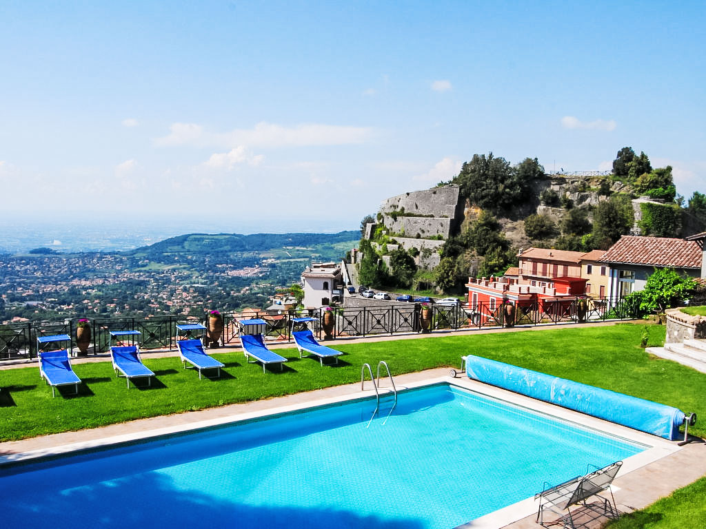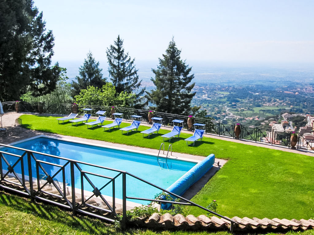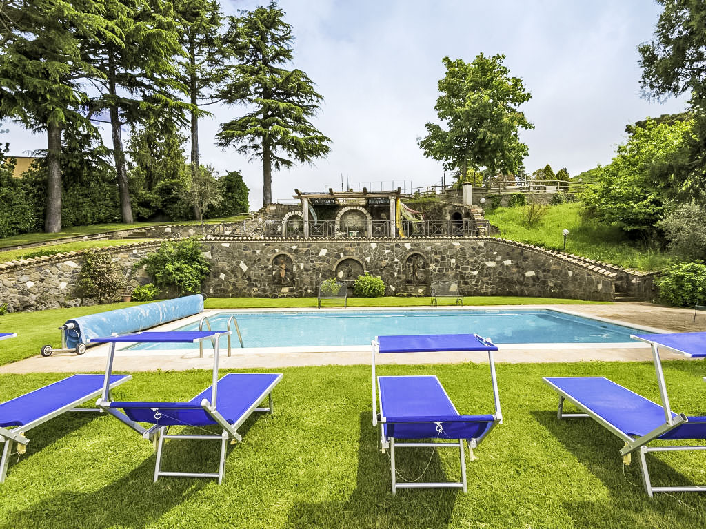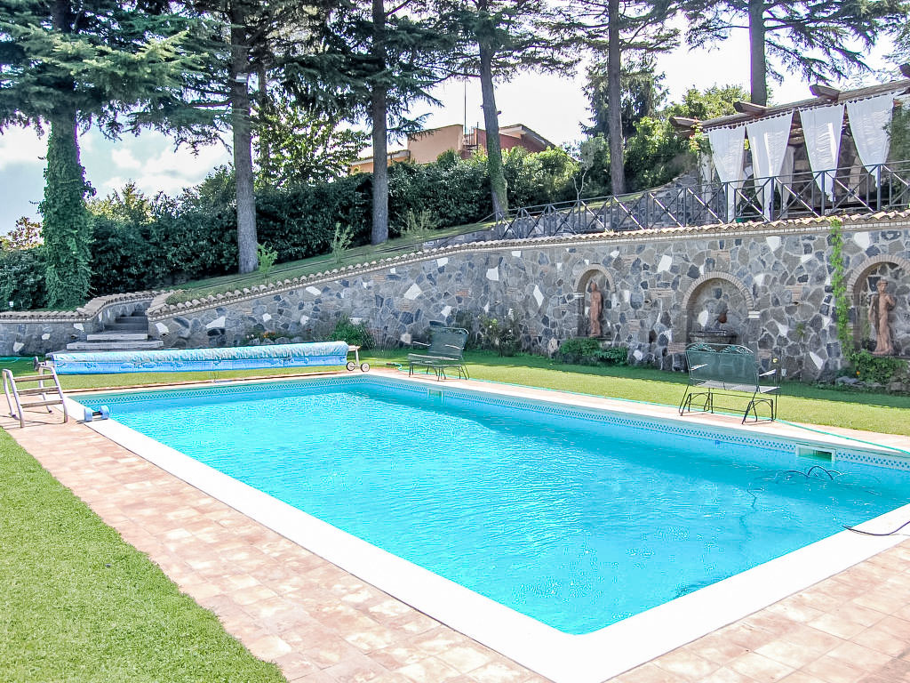 Zugang zum Pool und dem privaten Garten vom Balkon und über einen Fußweg über eine kleine Straße schöne, alleinstehende Villa "Vista da Rocca di Papa", auf 3 Stockwerken. Im Ort, 600 m vom Zentrum von Rocca Di Papa, ruhige, sonnige, erhöhte Lage im Villenviertel, 25 km vom Meer. Zur Alleinbenutzung: grosser Garten 4'000 m2 (eingezäunt) mit Rasen und Blumen, Teich, Schwimmbad (12 x 6 m, 110 - 220 cm tief, 15.05.-30.09.) mit Rollladenabdeckung. WC im Poolbereich, Poolhaus, Sitzplatz, Laube (10 m2), Terrasse, Gartenmöbel, Grill, Parkplatz (für 3 Autos) beim Haus. Lebensmittelgeschäft 600 m, Supermarkt 800 m, Restaurant 700 m, Bar 300 m. Nahe gelegene Sehenswürdigkeiten: Roma 30 km, Castel Gandolfo 8 km, Anzio 40 km, Lido di Ostia 40 km, Rainbow magic Land 30 km. Bekannte Seen in der Umgebung sind gut erreichbar: Lago di Albano 8 km, Lago di Nemi 11 km. Bitte beachten: Fahrzeug empfohlen. Jugendgruppen nur auf Anfrage. Der Besitzer akzeptiert keine Jugendgruppen. Der Besitzer wohnt auf dem gleichen Grundstück.