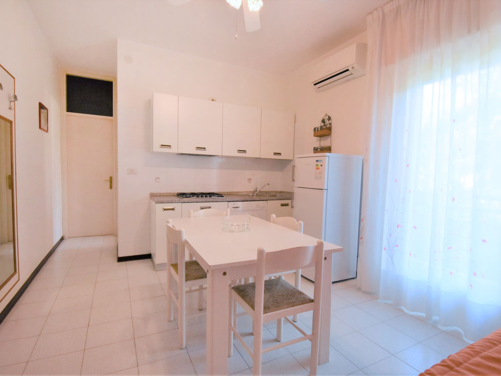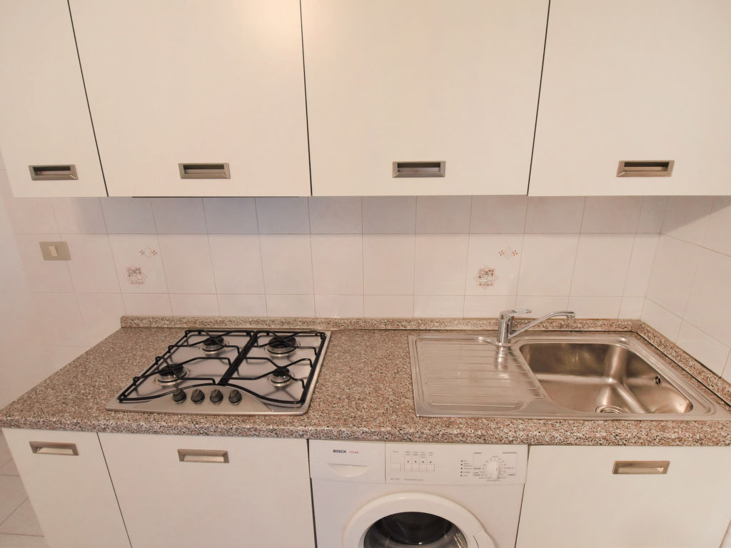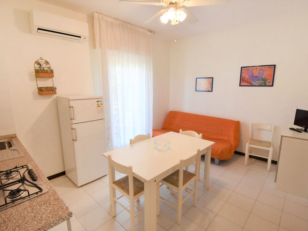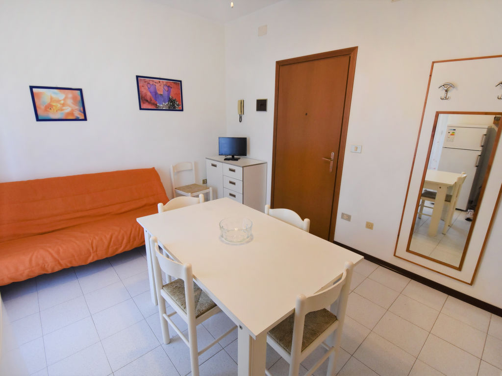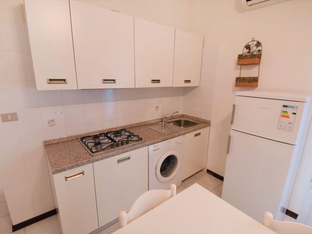 2-Zimmer-Wohnung 40 m2. Objekt geeignet für 2 Erwachsene + 2 Kinder. Hell, einfach und komfortabel eingerichtet: Wohn-/Esszimmer mit 1 Doppeldiwanbett und TV (Flachbildschirm). Ausgang zum Balkon. 1 Doppelzimmer. Ausgang zum Balkon. Kochnische (4 Kochplatten, Tiefkühler). Dusche/Bidet/WC. Klimaanlage (extra). Grosser Balkon. Balkonmöbel. Zur Verfügung: Waschmaschine. Parkplatz beim Haus. Bitte beachten: Nichtraucher-Unterkunft.