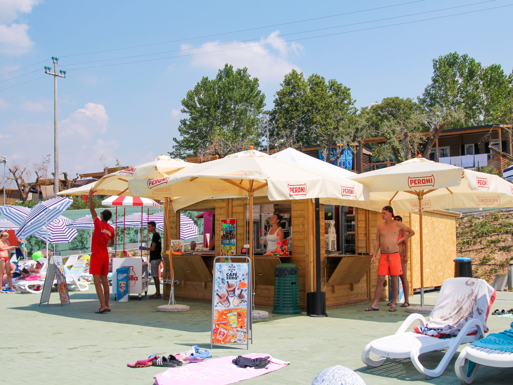 Grosses, kinderfreundliches Feriendorf "Cisano & San Vito". Im Ortsteil Cisano, 2.5 km vom Zentrum von Bardolino, 2.5 km vom Zentrum von Lazise, 700 m vom See, 700 m vom Strand, direkter Zugang zum Strand. Zur Mitbenutzung: Grundstück 17 ha (eingezäunt), 3 Schwimmbäder (saisonale Verfügbarkeit: 15.Apr.-30.Sep.). WC im Poolbereich, Kinderbecken, Rutschbahn, Aussendusche, Sprudelbad, Tennis (extra), Tischtennis (extra), Volleyballfeld, Kinderspielplatz. In der Anlage: Empfang, Restaurant, Bar, Wireless LAN (extra). Fitnessraum, Einkaufsmöglichkeit, Kiosk, Waschmaschine (extra), Wäschetrockner (zur Mitbenutzung, extra), Fahrradverleih. Parkplatz beim Haus, öffentliche Parkplätze extra. Einkaufsgeschäft 2 km, Kieselstrand 700 m. Nahe gelegene Sehenswürdigkeiten: Verona 28 km. Bitte beachten: geeignet für Familien, Kinderbetreuung in der Saison. Jugendgruppen nur auf Anfrage. Das Foto ist nur ein Hausbeispiel. Badekappenpflicht.
