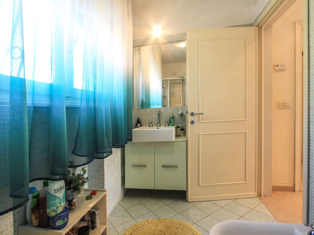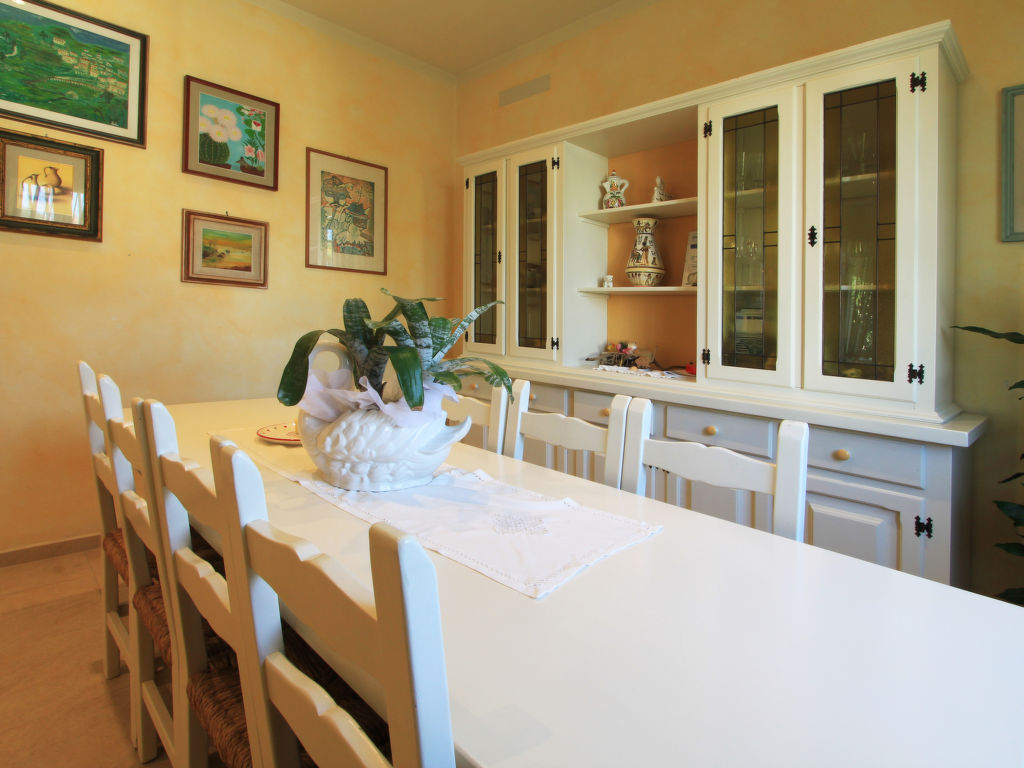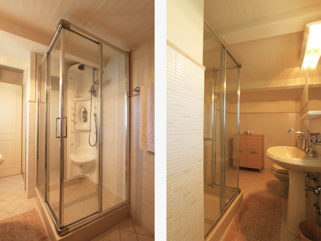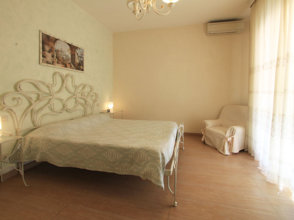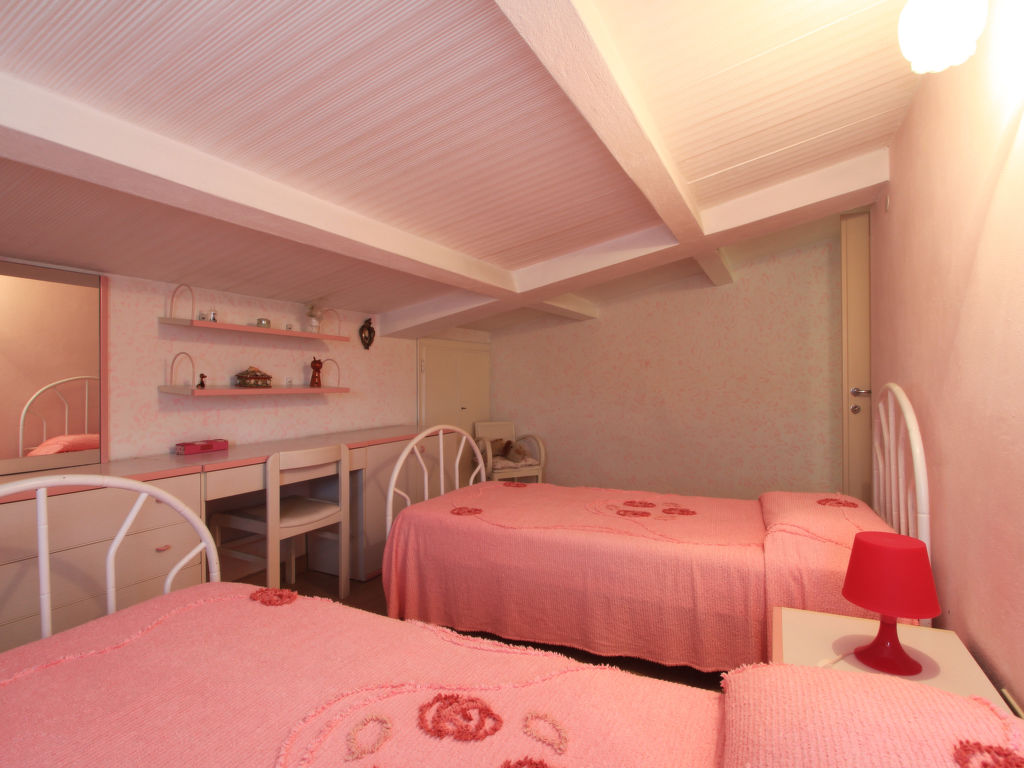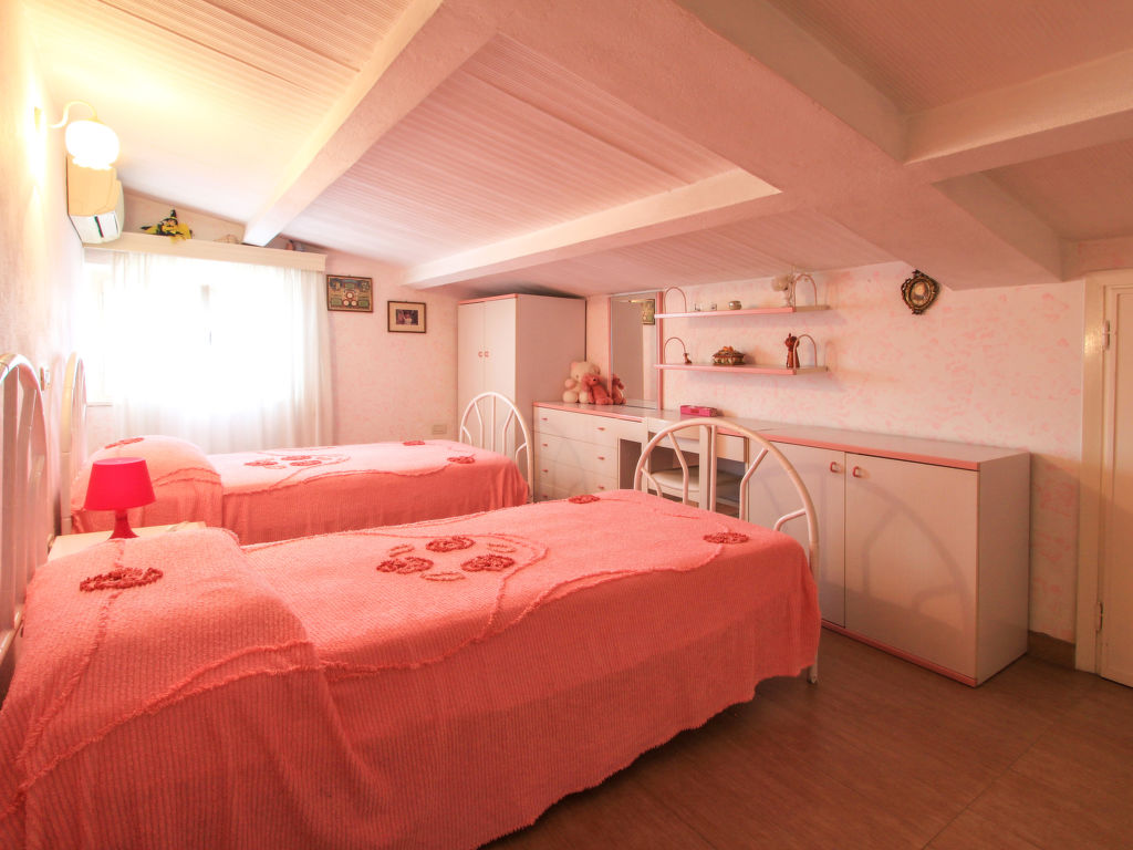 7-Zimmer-Villa 220 m2 auf 3 Stockwerken. Komfortabel und geschmackvoll eingerichtet: Wohn-/Esszimmer mit Sat-TV (Flachbildschirm), DVD und Klimaanlage. 1 Zimmer mit 1 Bett, 1 Ausziehbett und Klimaanlage. 1 Doppelzimmer mit Dusche/Bidet/WC und Klimaanlage. Küche (5 Kochplatten, Backofen, Geschirrspüler, Mikrowelle, Tiefkühler, elektrische Kaffeemaschine). Dusche/Bidet/WC. Obergeschoss: 1 Doppelzimmer mit Klimaanlage. Ausgang zum Balkon. 1 Doppelzimmer mit Klimaanlage. Bad/Bidet/WC. Dachgeschoss: 2 Zimmer, jedes Zimmer mit 2 Betten und Klimaanlage. Dusche/Bidet/WC. Zur Verfügung: Waschmaschine, Wäschetrockner, Safe, Haartrockner. Internet (Wireless LAN, gratis).