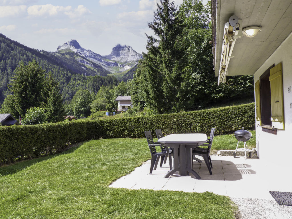 "Le Muguet 2", 3-Zimmer-Wohnung im Erdgeschoss. Komfortabel und geschmackvoll eingerichtet: Wohn-/Esszimmer mit TV und Flachbildschirm. 1 Zimmer mit 1 franz. Bett (160 cm, Länge 200 cm). 1 Zimmer mit 2 Betten (90 cm, Länge 200 cm). Offene Küche (Geschirrspüler, 4 Glaskeramikherd Platten, Toaster, Wasserkocher, Mikrowelle, elektrische Kaffeemaschine, Kapseln für die Kaffeemaschine (Nespresso) extra, Racletteofen, Fondue Set (Chinoise, Käse)). Bad/WC. Grosse Terrasse. Terrassenmöbel, Gartengrill, Liegestühle. Schöne Sicht auf die Berge. Zur Verfügung: Internet (Wireless LAN, gratis). Parkplatz (1 Auto).