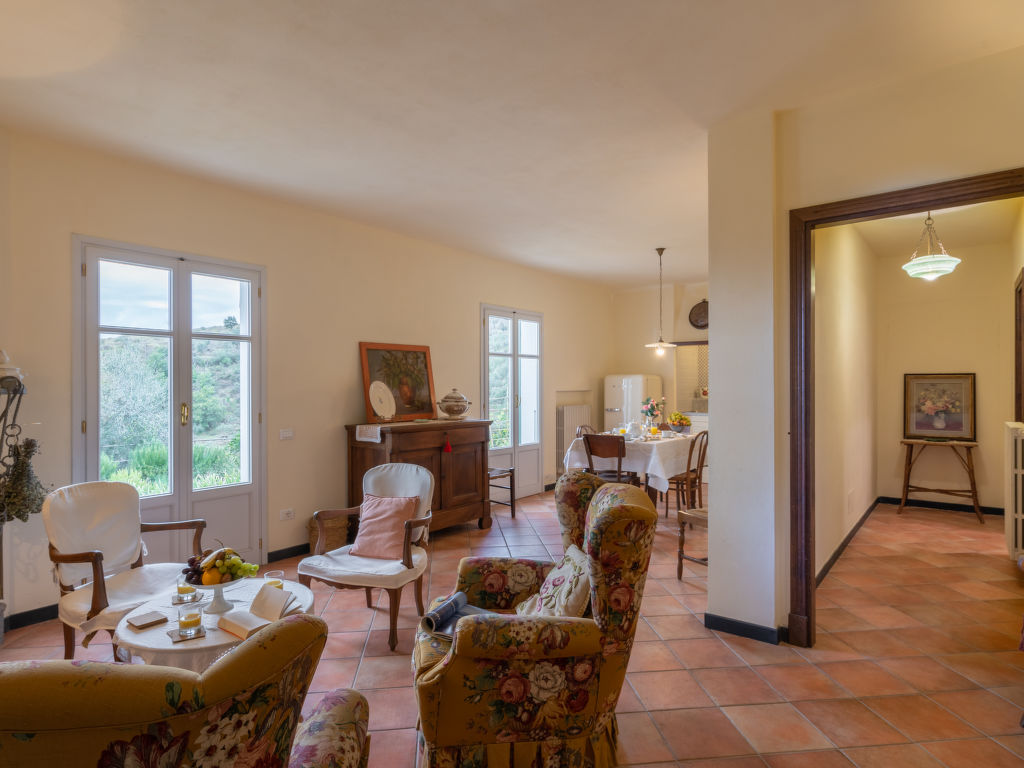 "Il Terebinto (IMP427)", 3-Zimmer-Haus 100 m2 auf 2 Stockwerken. Rustikal und gemütlich eingerichtet: offenes grosses Wohnzimmer mit offenem Kamin (nur Deko). Ausgang zum Garten. Offene Küche (Backofen, Geschirrspüler, 4 Flammen, Wasserkocher, elektrische Kaffeemaschine) mit Esstisch. Ausgang zum Garten. Dusche/WC. Obergeschoss: 1 Zimmer mit 1 franz. Bett (150 cm). 1 Zimmer mit 1 franz. Bett (120 cm), 1 Schlafmöglichkeit. Bad/WC. Keine Heizmöglichkeit. Terrasse 40 m2, Gartensitzplatz. Terrassenmöbel, Gartengrill (mobil), Liegestühle (2). Sehr schöne Panoramasicht auf das Tal, die Landschaft, den Wald und das Meer. Zur Verfügung: Waschmaschine. Internet (Wireless LAN, gratis). Bitte beachten: Nichtraucher-Haus. Maximal 1 Haustier/Hund erlaubt. CITR: 008031-AGR-0004