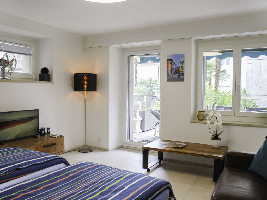 "Appartamento 2- Giardino", 2-Zimmer-Wohnung 35 m2, im ebenerdigen Untergeschoss. Geräumig und hell, teilweise renoviert im Jahre 2021, komfortabel und geschmackvoll eingerichtet: Wohn-/Schlafzimmer mit 2 Wandschrankbetten (90 cm, Länge 200 cm), Kabel-TV und Internationale TV-Sender (Flachbildschirm), Radio, CD und Stereoanlage. Ausgang zur Terrasse, zum Gartensitzplatz. Grosse Wohnküche (Backofen, 2 Glaskeramikherd Platten, Wasserkocher, elektrische Kaffeemaschine, Kapseln für die Kaffeemaschine (Nespresso) extra) mit Esstisch. Ausgang zum Gartensitzplatz. Dusche/WC. Grosser Gartensitzplatz teilweise überdacht. Terrassenmöbel, Liegestühle (2), Sitzplatz. Sicht auf den Garten. Zur Verfügung: Bügeleisen, Haartrockner. Internet (Wireless LAN). Bitte beachten: Nichtraucher-Unterkunft.