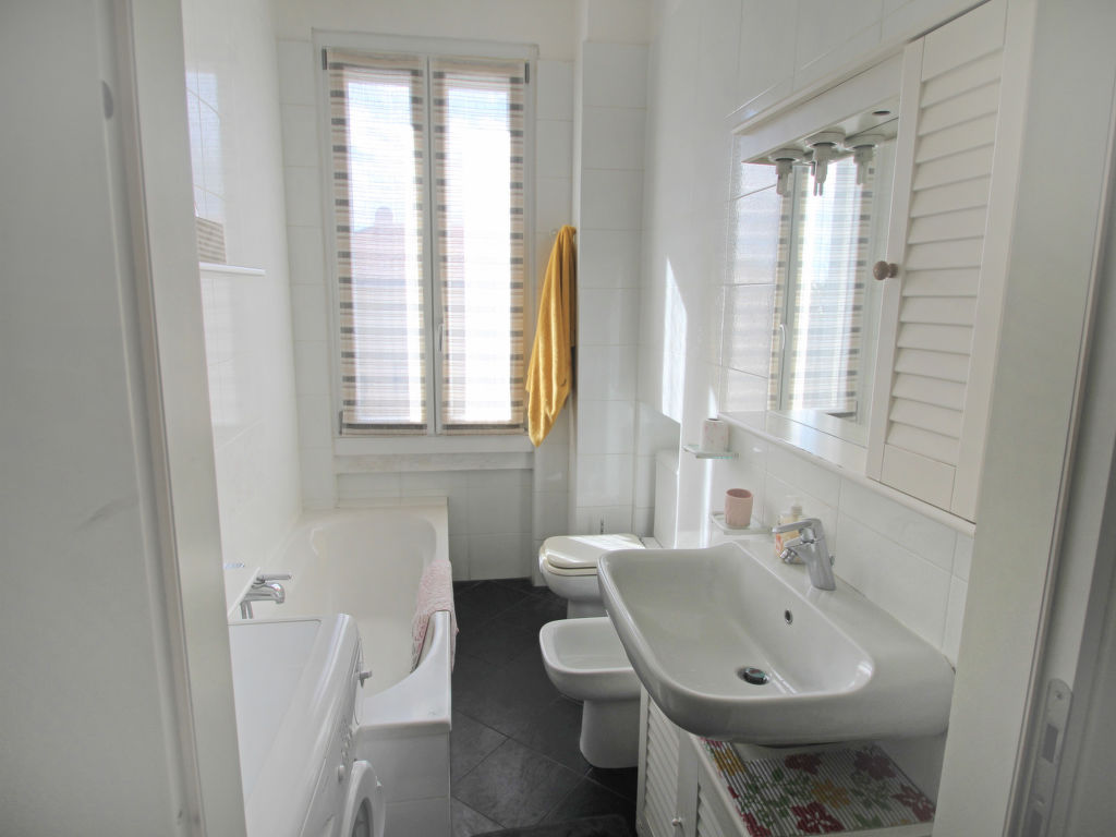 "Girasole", 3-Zimmer-Wohnung 65 m2 im 2. Stock. Zweckmässig eingerichtet: Wohn-/Esszimmer mit 1 Diwanbett und TV. Ausgang zum Balkon. 1 Doppelzimmer. Ausgang zum Balkon. 1 Zimmer mit 1 Bett. Kochnische (4 Kochplatten, Backofen, Geschirrspüler, Mikrowelle, Tiefkühler, elektrische Kaffeemaschine). Bad/Bidet/WC. G-Heizung (extra). Heizung nur verfügbar von 15.10. bis 15.04. Parkettböden. 2 kleine Balkone. Zur Verfügung: Waschmaschine, Kinderhochstuhl, Haartrockner. Internet (Wireless LAN, gratis). CIR:10307200123