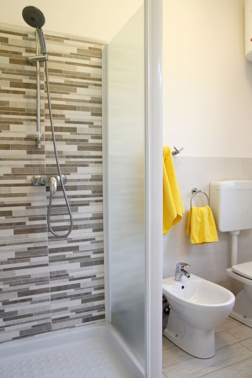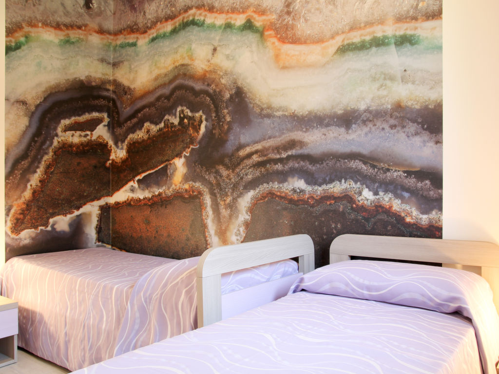 "Malva", 3-Zimmer-Reihenhaus 58 m2 auf 2 Stockwerken. Zweckmässig eingerichtet: Wohn-/Esszimmer mit Esstisch und Sat-TV. Ausgang zur Terrasse. Kochnische (Geschirrspüler, 4 Induktionskochplatten, Toaster, Wasserkocher, Mikrowelle, Tiefkühler). Dusche/Bidet/WC. Obergeschoss: 1 Zimmer mit 1 Doppelbett. Ausgang zum Balkon. 1 Zimmer mit 2 Betten. E-Heizung, Klimaanlage. Balkon, Terrasse überdacht, kleiner Garten. Terrassenmöbel, Gartengrill. Zur Verfügung: Waschmaschine, Bügeleisen. Internet (Wireless LAN, gratis). Parkplatz (1 Auto). Bitte beachten: geeignet für Familien. Nichtraucher-Haus. Eigener Eingang.