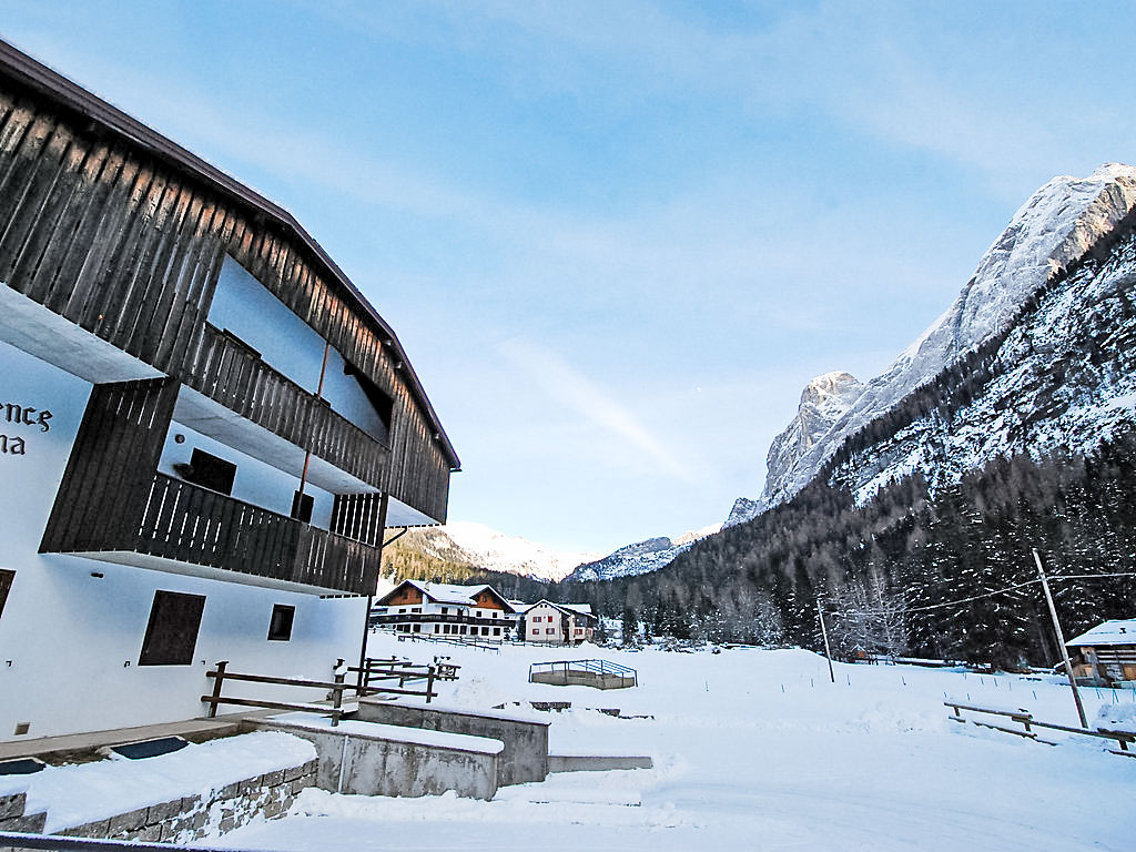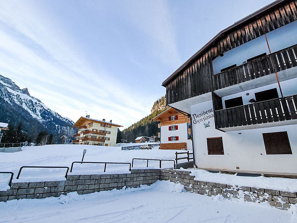Penia 3 km von Canazei: Kleines, komfortables Mehrfamilienhaus "Genziana". 9 Wohnungen im Ferienhaus. 1.5 km vom Zentrum von Alba di Canazei, 3 km vom Zentrum von Canazei, ruhige Lage im Villenviertel, 800 m vom Skigebiet. Im Hause: Skiraum. Im Winter bitte Schneeketten mitbringen. Parkplatz beim Haus, Einzelgarage, öffentliche Parkplätze auf der Strasse. Lebensmittelgeschäft 300 m, Supermarkt 1 km, Restaurant, Bar 300 m. Luftseilbahn 800 m, Skibushaltestelle 300 m. Nahe gelegene Sehenswürdigkeiten: Sella Ronda 800 m, Marmolada 9 km. Bitte beachten: Fahrzeug empfohlen. In diesem Haus sind weitere Ferienwohnungen mietbar.