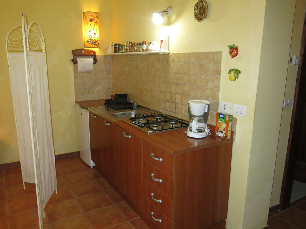 1-Zimmer-Wohnung, Erdgeschoss, ca. 30 m². Wohn-/Schlafraum mit franz. Bett (1,60 m breit), Essplatz und Küchenzeile (4 Flammen, Kühlschrank, Kaffeemaschine), Terrassenausgang. Dusche/WC. CIR: 06801CTY0002