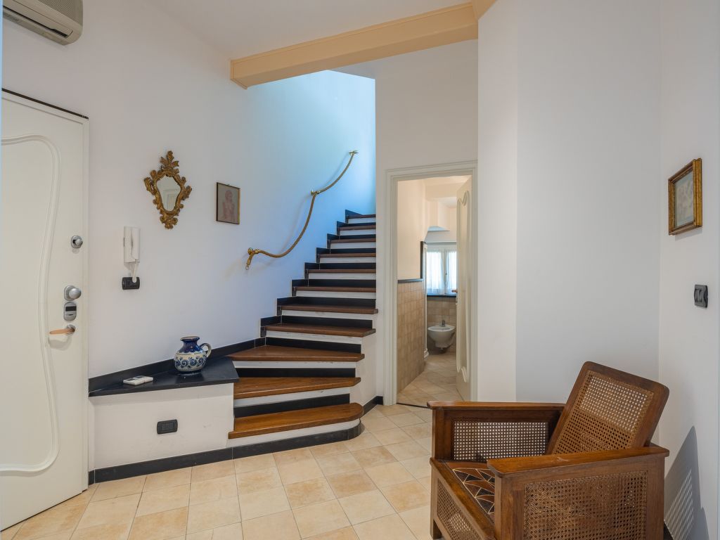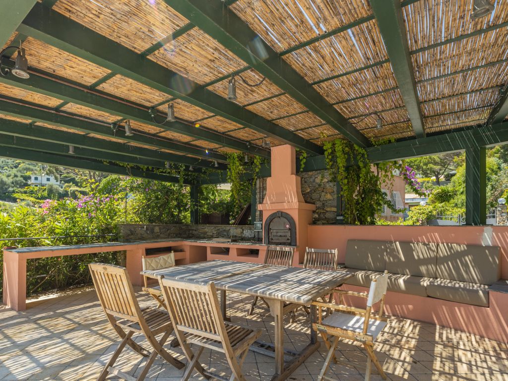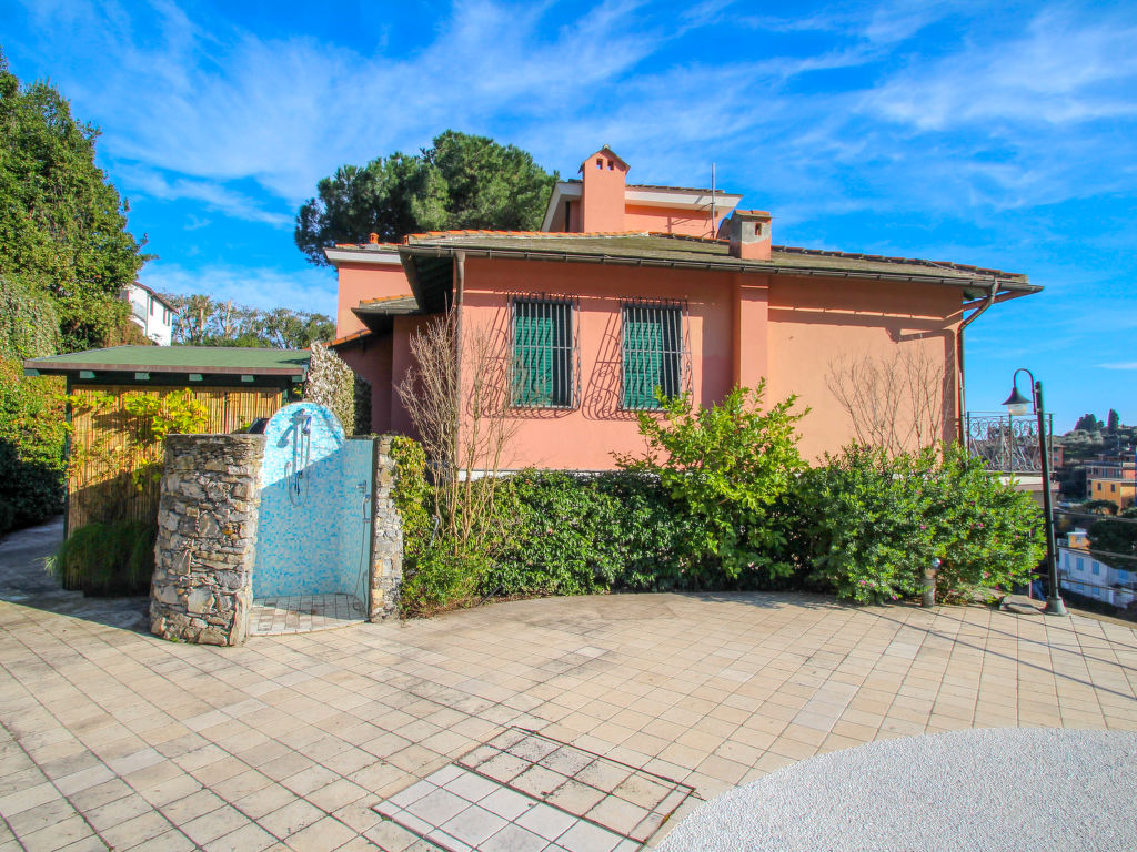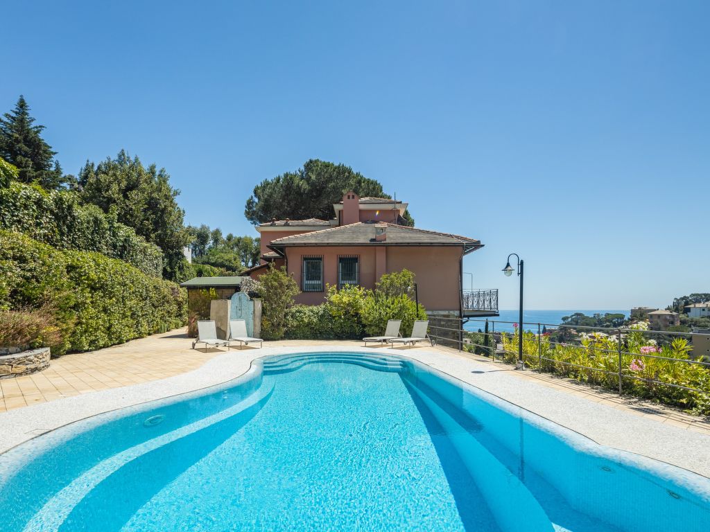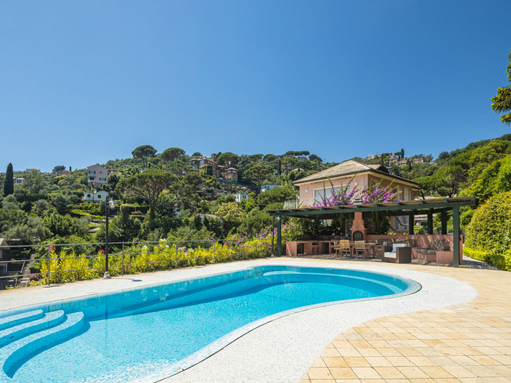 Grosses Zweifamilienhaus, einseitig angebaut. Oberhalb von San Michele di Pagana, 2 km vom Zentrum von Santa Margherita, 2.5 km vom Zentrum von Rapallo, erhöhte Lage im Villenviertel, 700 m vom Meer, in einer Sackgasse. Zur Mitbenutzung: Grundstück (eingezäunt) mit Bäumen, Schwimmbad (30 m2, 50 - 250 cm tief, saisonale Verfügbarkeit: 15.Mai.-30.Sep.). Aussendusche, Sitzplatz (20 m2), Gartenmöbel. Zufahrt bis zum Haus. Parkplatz (für 3 Autos) beim Haus. Supermarkt 1.5 km, Restaurant, Bar 700 m, Bushaltestelle "700", Bahnstation "Santa Margherita" 2.1 km, Steinstrand 800 m (klein). Jacht-Hafen 2 km, Golfplatz 4 km. Nahe gelegene Sehenswürdigkeiten: Portofino 7 km, Camogli 11 km. Bitte beachten: Fahrzeug empfohlen. Eisenbahnlinie 400 m vom Haus. Die Nachbarschaft ist sehr lärmempfindlich. Ruhe und gutes Benehmen wird erwartet.