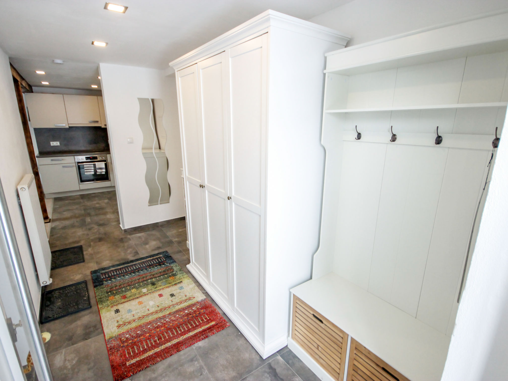 "Holz", 3-Zimmer-Wohnung 51 m2, im erhöhten Erdgeschoss. Objekt geeignet für 4 Erwachsene. Vollständig renoviert im Jahre 2018, geschmackvoll und gemütlich eingerichtet: Eingang. 1 Zimmer mit 1 Doppelbett (180 cm, Länge 200 cm). 1 Zimmer mit 1 Bett (90 cm, Länge 200 cm). Wohn-/Esszimmer mit 1 Diwanbett und Kabel-TV (Flachbildschirm). Ausgang zum Balkon. Offene Küche (Backofen, Geschirrspüler, 4 Glaskeramikherd Platten). Dusche/WC. Kleiner Balkon 4 m2. Balkonmöbel. Schöne Sicht auf die Berge. Zur Verfügung: Internet (Wireless LAN, gratis). Bitte beachten: geeignet für Familien. Nichtraucher-Unterkunft.