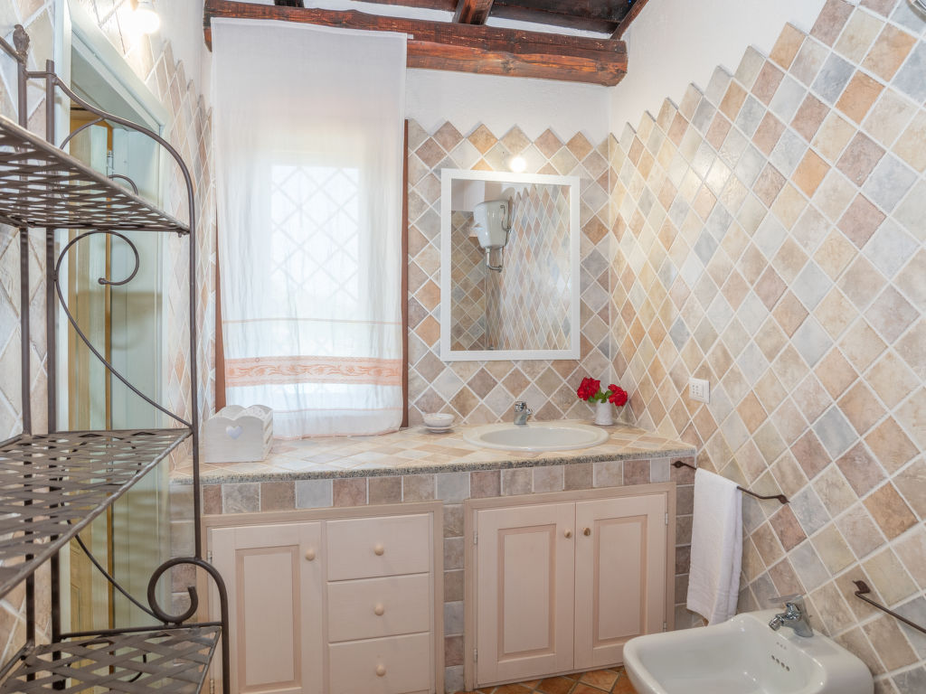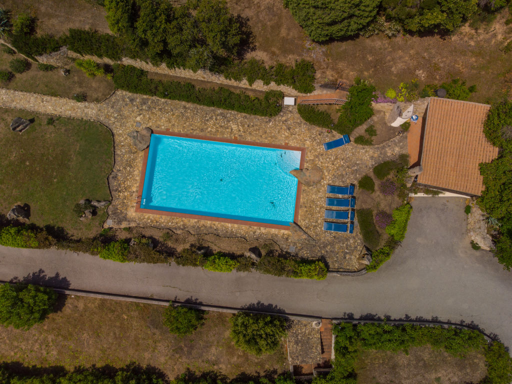 Grosse, gemütliche Villa "Paradiso", umgeben von Bäumen und Feldern. 5.5 km vom Zentrum von San Pasquale, 17 km vom Zentrum von Santa Teresa di Gallura, ruhige Lage am Hang, 6.5 km vom Meer, im Grünen. Zur Alleinbenutzung: Grundstück 1 ha (eingezäunt), gepflegter Garten mit Rasen und Bäumen, Schwimmbad eingezäunt (6 x 12 m, 140 cm tief, 01.05.-16.10.). Aussendusche. Zufahrt bis zum Haus. Treppenweg bis zum Haus. Parkplatz, Einzelgarage. Supermarkt 6 km, Restaurant 6 km, Bar 6 km, Sandstrand "Porto Pollo" 15 km. Jacht-Hafen 7 km, Surfschule 7 km, Segelschule 7 km. Nahe gelegene Sehenswürdigkeiten: Porto Pozzo 6.5 km, Palau 17 km, Arcipelago di La Maddalena 23 km, Porto Cervo 40 km. Bitte beachten: Fahrzeug empfohlen.