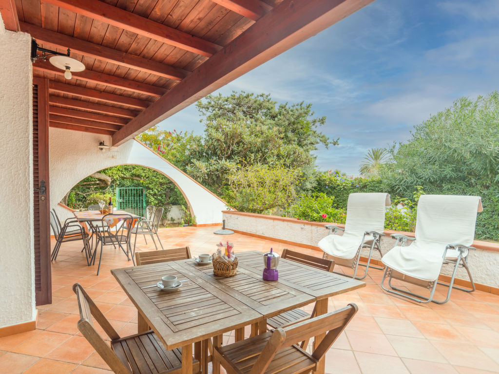 Alleinstehendes Einfamilienhaus "Villa Tulipani". 400 m vom Zentrum von Costa Rei, am Ortsrand, 16 km vom Zentrum von Villasimius, 60 km vom Zentrum von Cagliari, 200 m vom Meer. Zur Alleinbenutzung: Grundstück (eingezäunt), gepflegter Garten mit Rasen und Pflanzen. Aussendusche, Grill, Parkplatz (überdacht) auf dem Grundstück. Einkaufsgeschäft, Supermarkt, Restaurant 400 m, Sandstrand 200 m. Hinweis: Für Anreisen nach 20 Uhr ist eine Gebühr von € 50 zu entrichten.