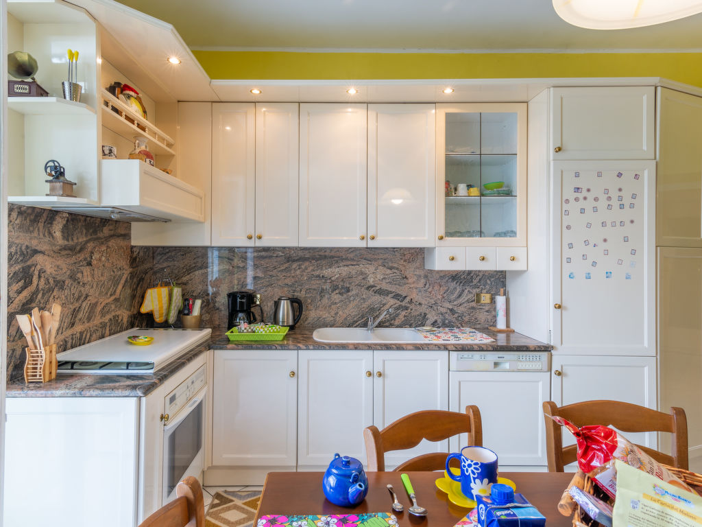 "Terrace Lake View", 4-Zimmer-Wohnung 150 m2 auf 2 Stockwerken. Geschmackvoll und stilvoll eingerichtet: offenes Wohn-/Esszimmer mit offenem Kamin (nur Deko), Digital-TV. Ausgang zur Terrasse. 1 Doppelzimmer. Ausgang zur Terrasse. 1 Doppelzimmer mit sep. WC. Küche (5 Kochplatten, Backofen, Geschirrspüler, Toaster, Wasserkocher, Mikrowelle, elektrische Kaffeemaschine) mit Esstisch, TV. Ausgang zur Terrasse. Bad/WC. Unteres Geschoss: 1 Zimmer mit 1 Bett und 1 x 2 Etagenbetten, 1 Doppelbett. Dusche/WC. G-Heizung. Natursteinböden. Grosse Terrasse 100 m2. Terrassenmöbel, Gartengrill, Liegestühle. Sehr schöne Panoramasicht auf den See, die Berge und die Ortschaft. Zur Verfügung: Waschmaschine, Babybett bis 2 Jahre. Internet (Wireless LAN, gratis). Bitte beachten: Nichtraucher-Haus. Eigener Eingang. 013152-CNI-00028
