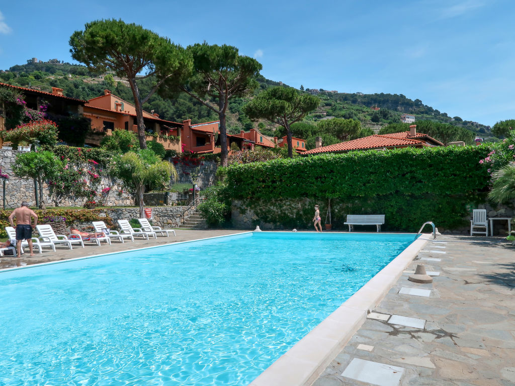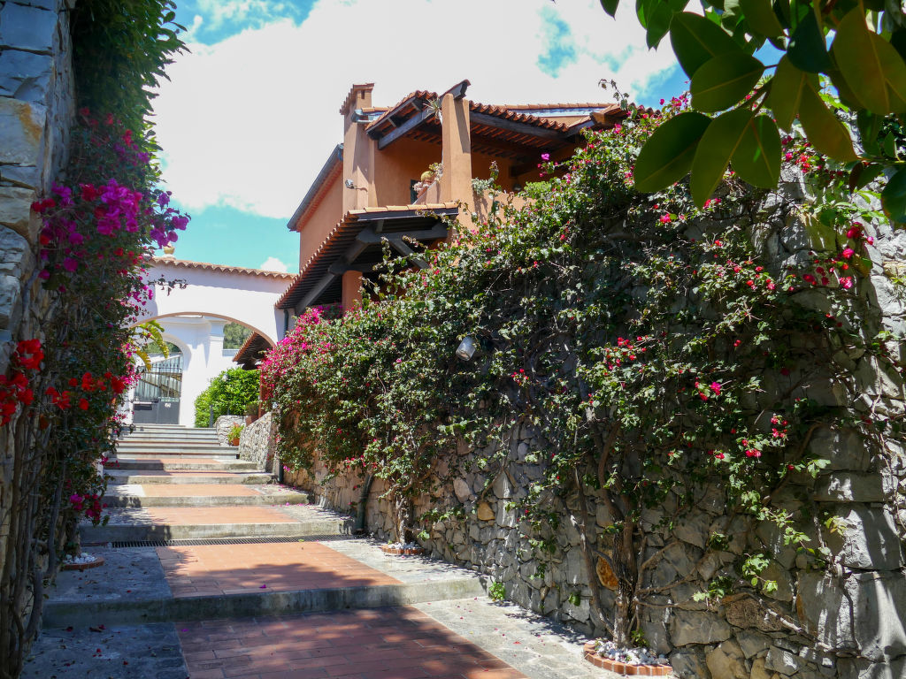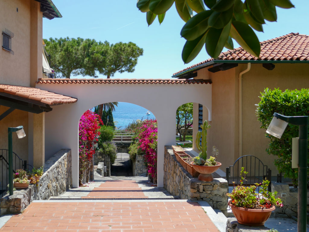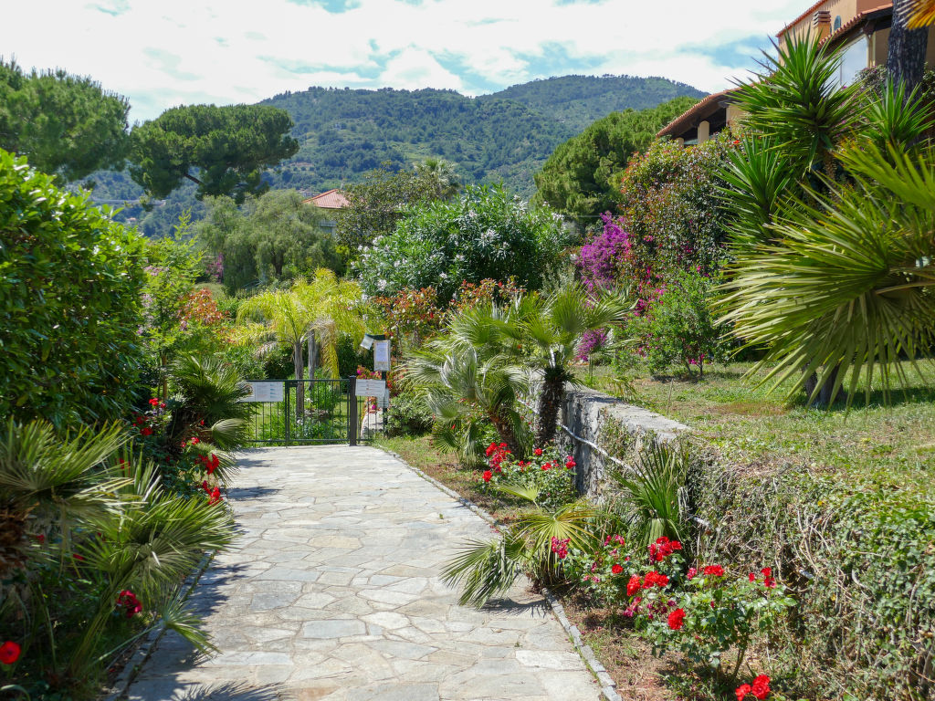 Vemtimiglia Latte: Schöne Feriensiedlung "Le Gorgonie". 30 Häuser im Ferienresort. 3 km vom Zentrum von Ventimiglia, 5 km vom Zentrum von Menton -France, 18 km vom Zentrum von Monte Carlo -France, am Hang, 100 m vom Meer, direkter Zugang zum Strand. Zur Mitbenutzung: grosser, gepflegter Garten 2'000 m2 (eingezäunt) mit Rasen und Pflanzen, Schwimmbad (16 x 9 m, 100 - 180 cm tief, saisonale Verfügbarkeit: 15.Jun.-15.Sep. Öffnungszeiten Schwimmbad: 09:00-13:30 und 15:30-19:00). Aussendusche, Tennis, Terrasse, Gartenmöbel. 200 m lange schmale Zufahrt. Breite der Zufahrtsstrasse: 250 cm. Parkplatz Nr. 1 auf dem Grundstück. Nahe gelegene Sehenswürdigkeiten: Giardini Hanbury 2 km, Balzi Rossi 5 km. Bitte beachten: Fahrzeug empfohlen. Eisenbahnlinie in der Nähe 100 m vom Haus. Badekappenpflicht.